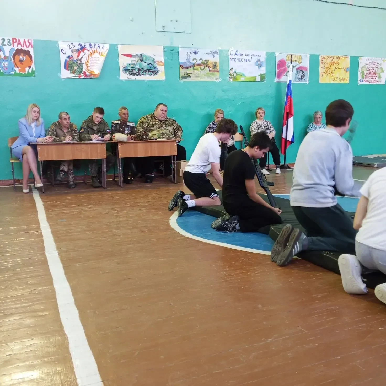 Директор школы И.С. Бабичева поздравила всех присутствующих мужчин с праздником, пожелала командам честной победы и хорошего настроения.