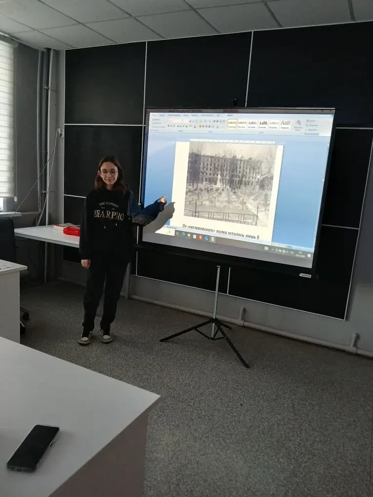 Школьники узнали подробную информацию о выдающихся заслугах воронежцев, отстоявших в кровопролитных боях родной город. Воронеж стал единственным городом в Европе, где фашисты не смогли установить свою власть и назначить бургомистра. На призывы немцев к населению записываться в полицию не пришёл ни один человек.
