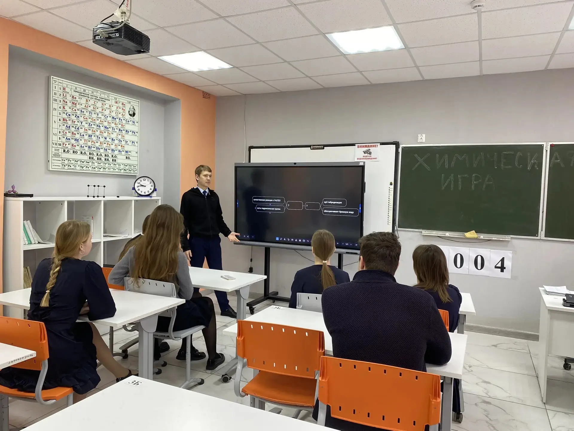 Сегодня на уроке химии ребята приняли участие в интеллектуальной игре, посвящённой обобщению курса органической химии. Мероприятие прошло в формате «Химический ринг» что позволило в интерактивной форме систематизировать знания по ключевым темам: углеводороды, спирты, карбонильные соединения.