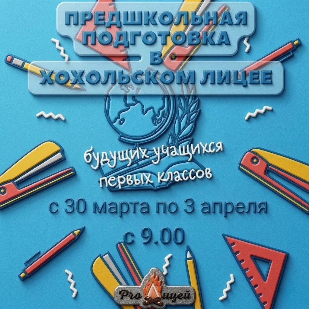 МБОУ «Хохольский лицей» приглашает будущих первоклассников на подготовительные занятия, которые состоятся с 30 марта по 3 апреля 2026г. и затем в августе (дополнительно сообщим), по адресу: р.п. Хохольский, ул. Школьная, д.20