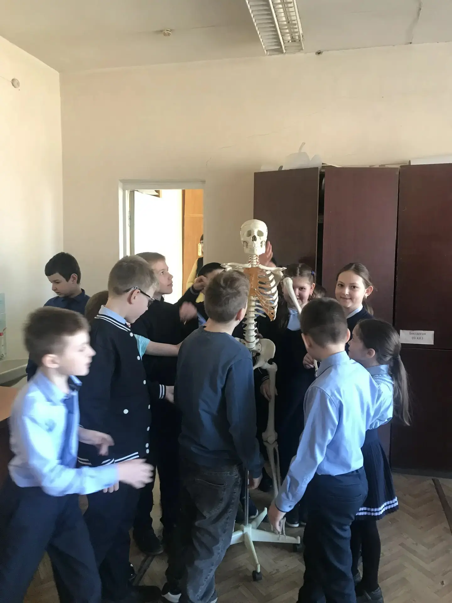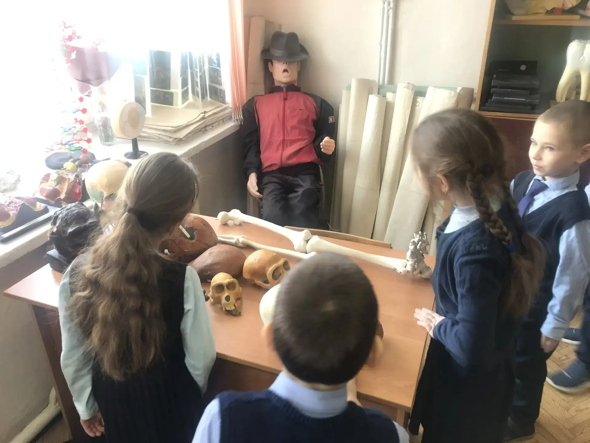 10 апреля обучающиеся начальных классов совершили увлекательную экскурсию в лабораторию кабинета биологии. Особый интерес вызвал скелет Костик)))