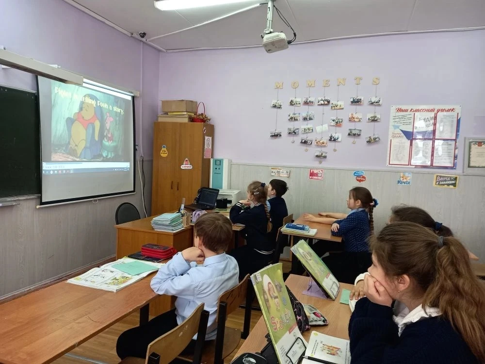 Также учащиеся начальных классов посмотрели мультфильмы на изучаемом языке. Просмотр мультфильмов- это отличный способ для детей улучшить своё произношение, помогает детям расширить свой словарный запас.