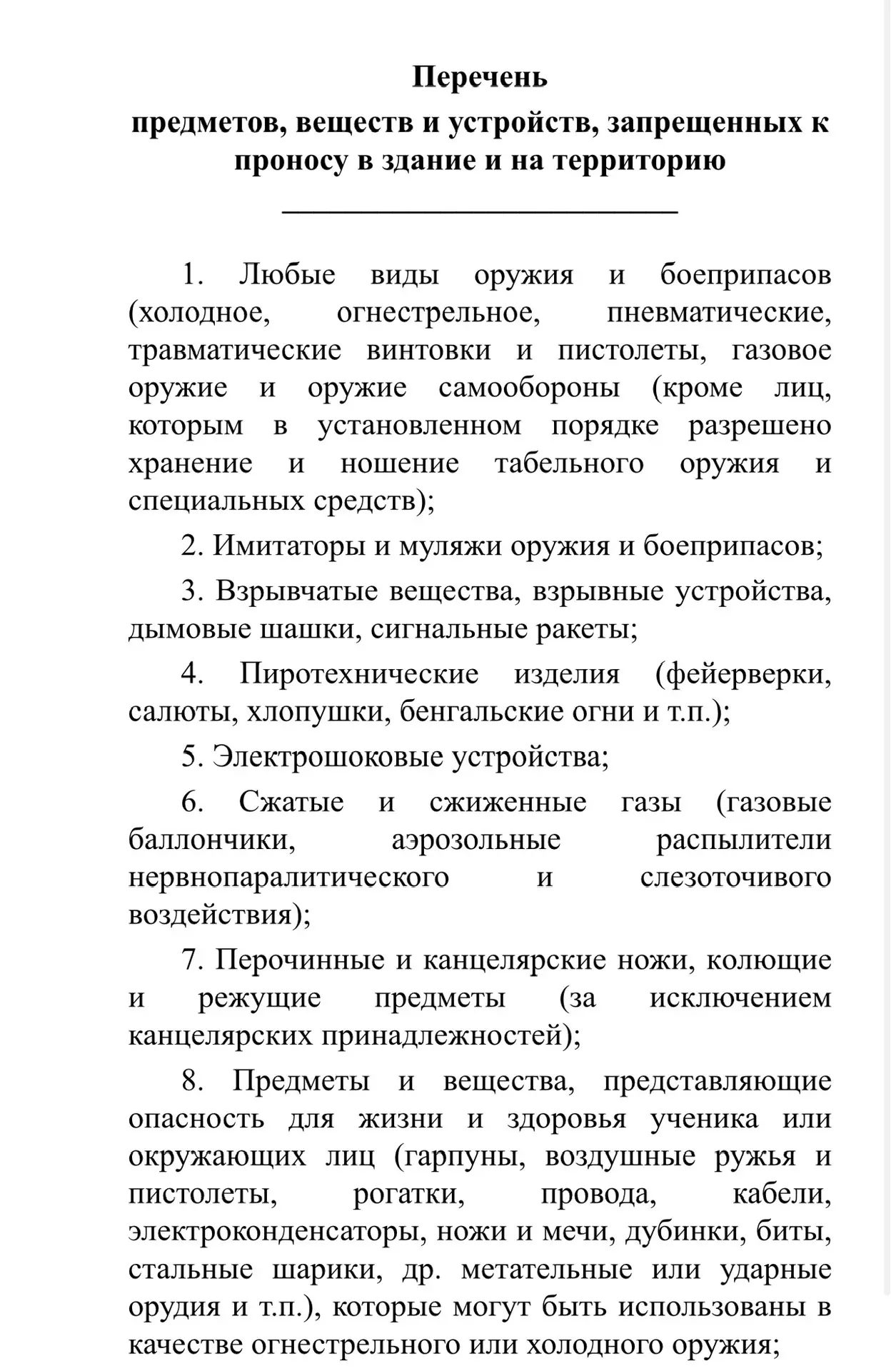 Повторно публикуем перечень предметов и веществ, запрещенных к проносу в школу!