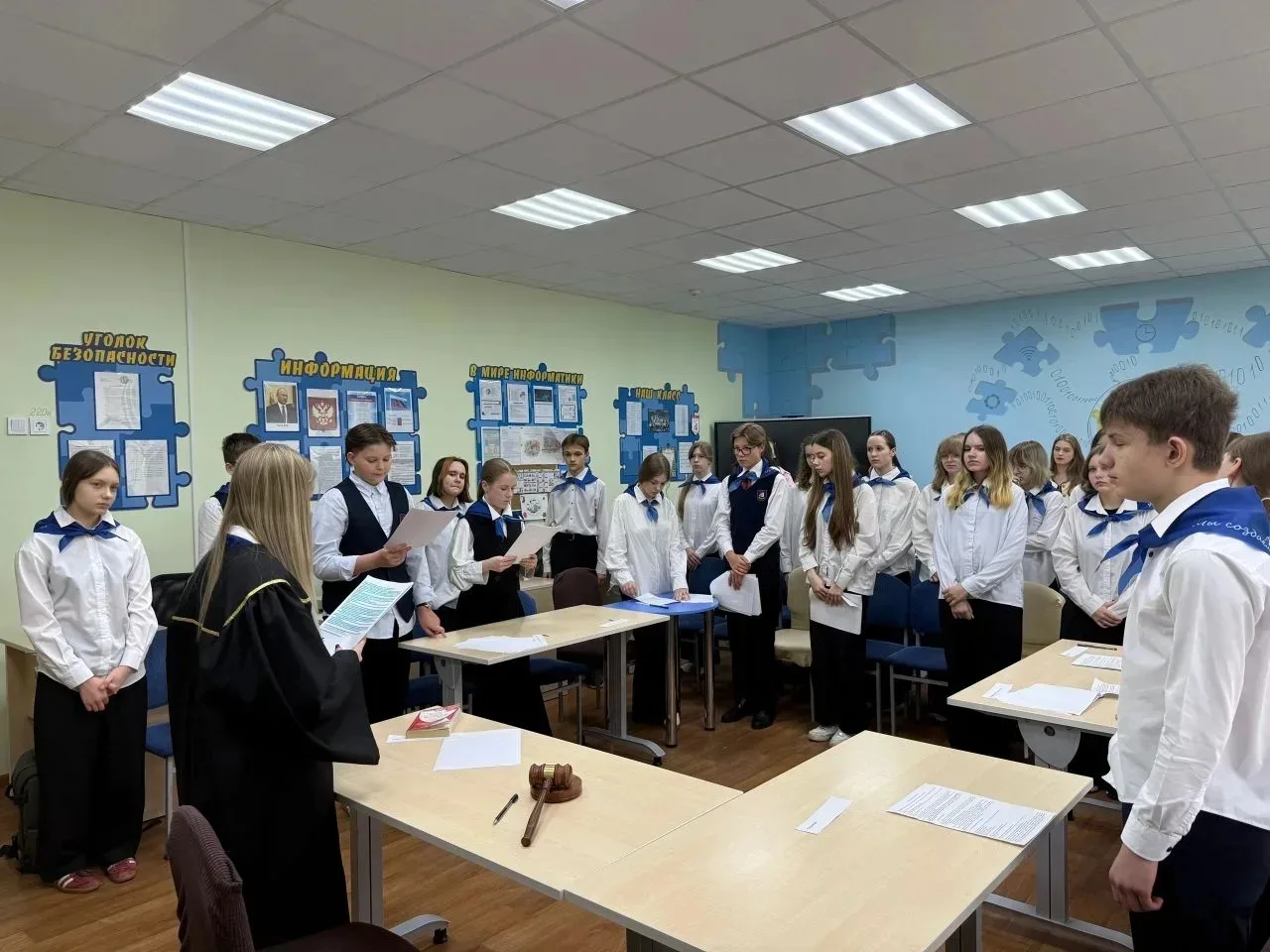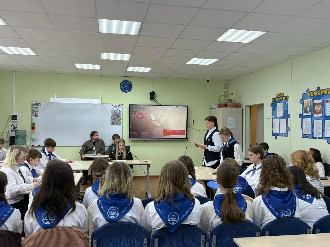 Мы решили сегодня вернуться в предыдущие дни и показать работу в юридическом классе. Открытие этого класса на базе МБОУ СОШ № 55 было проведено совместно с Российским государственным университетом правосудия им. В. М. Лебедева.