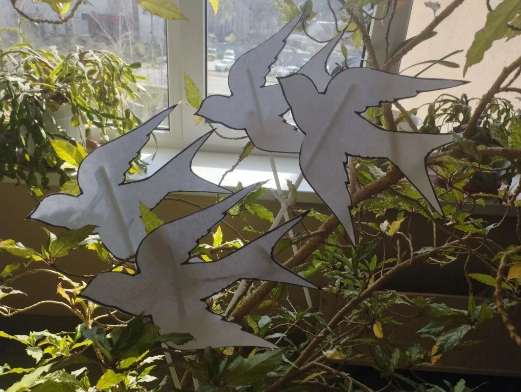 Конечно, юные активисты нашей школы не могли не призвать детей и взрослых к охране пернатых. Вместе с советником директора по воспитанию ребята из 6 "А" класса подготовили бумажных птиц. Выбран был образ ласточки - символ весны.