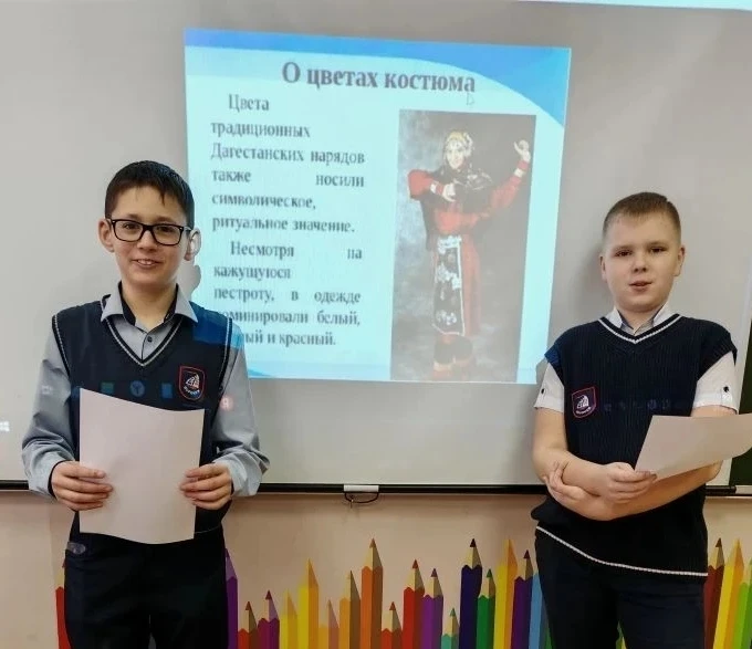 В 5 "В" классе прошло необычное занятие-путешествие «В гости к народам России». Вместо того чтобы листать учебники, ребята вместе со своим классным руководителем Лавлинской Е. С. решили отправиться в экспедицию по просторам нашей Родины прямо за своими партами!