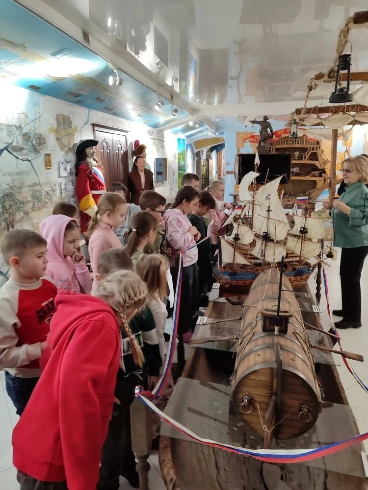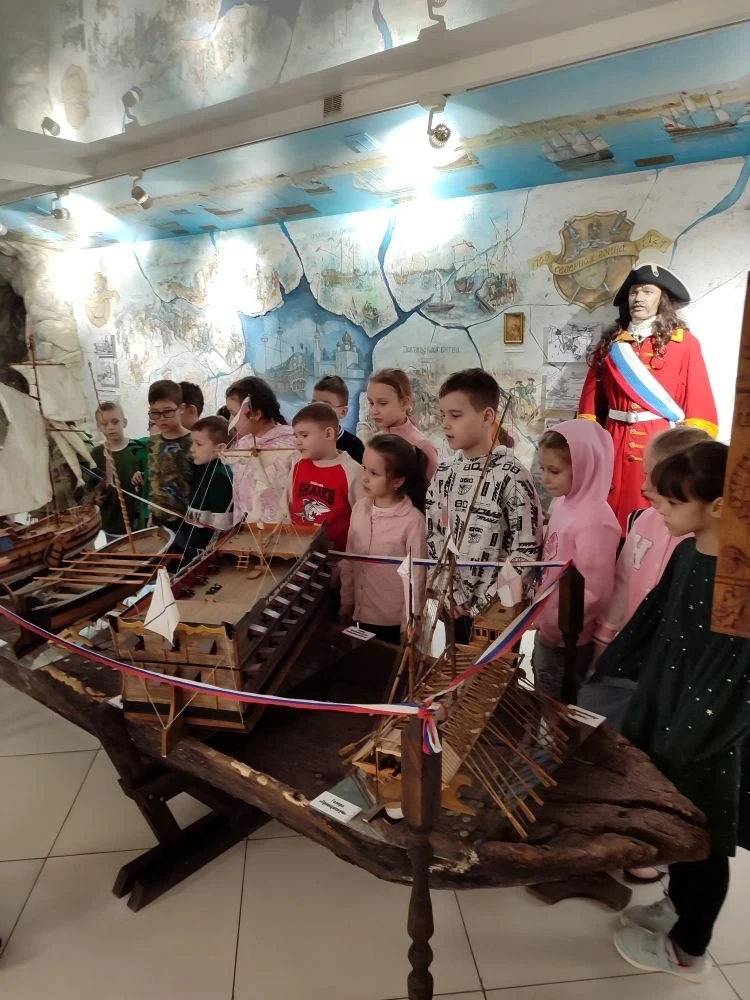 В рамках изучения истории родного края и патриотического воспитания обучающиеся 1 «Д» класса вместе с классным руководителем Казачковой О. Н. на весенних каникулах посетили музей «Петровские корабли». Экскурсия стала для первоклассников настоящим открытием. Юные посетители узнали, почему Воронеж называют «Колыбелью российского флота» и какую ключевую роль в становлении морского могущества России сыграл Пётр I. Ребята с интересом слушали рассказ о строительстве первых военных кораблей, об истории воронежских верфей и о том, как создавался Азовский флот.