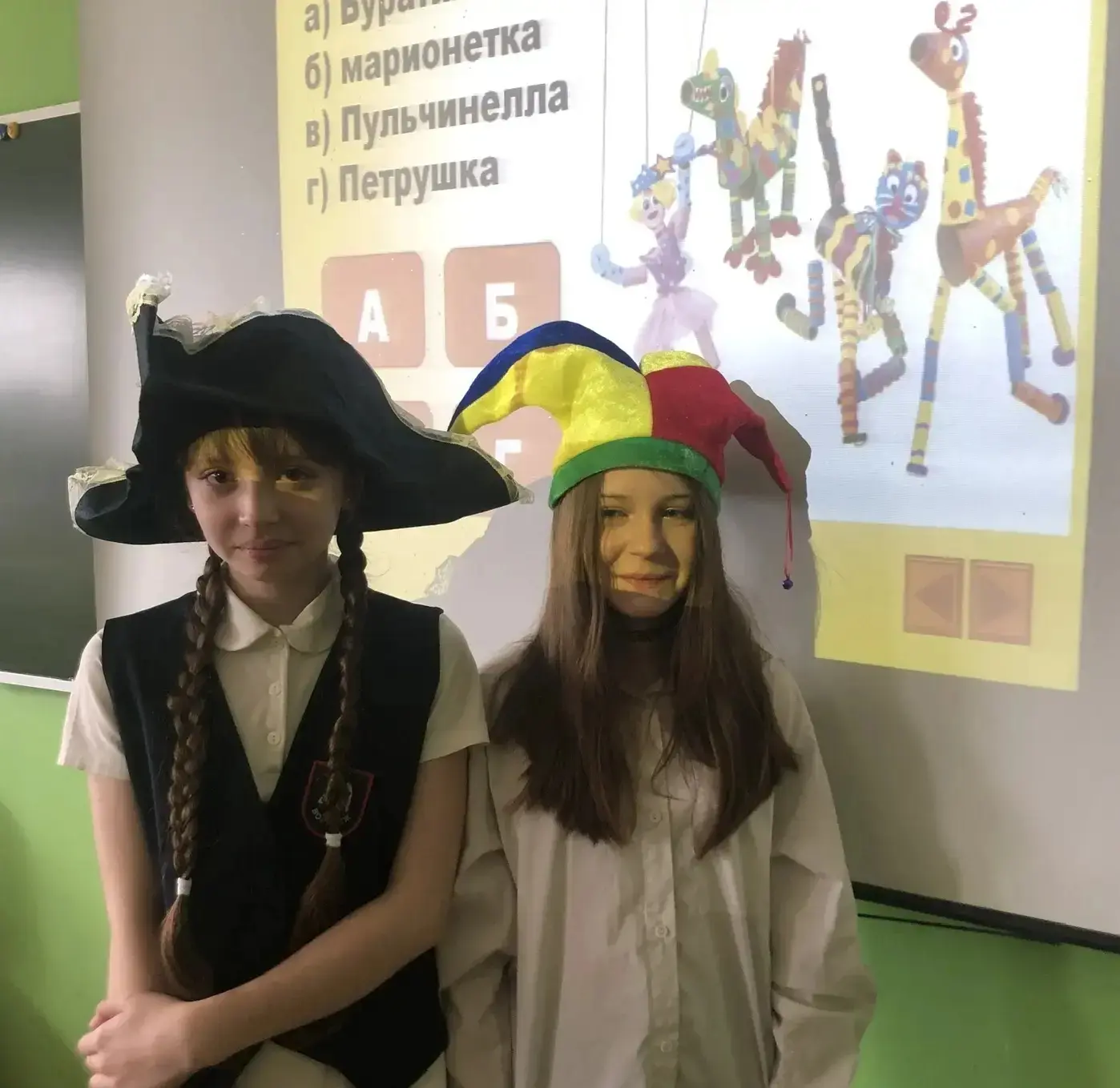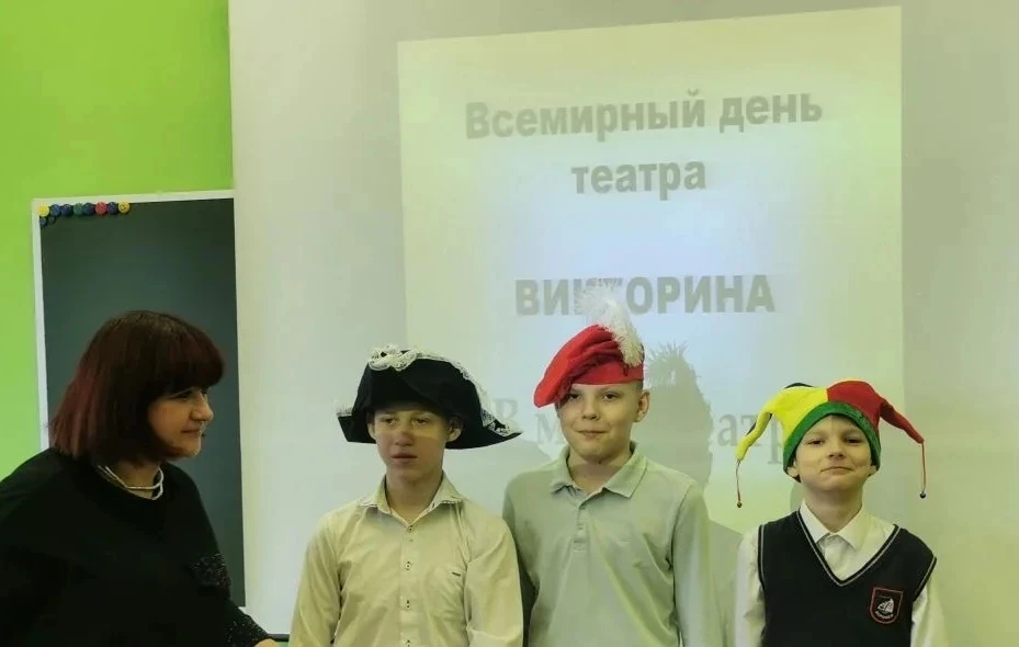 Во-вторых, для ребят из 6 и 11 классов День театра запомнился викторинами и выполнением актерских заданий. Ученики 6 "Г" с радостью включились в игру - нужно было сыграть фразу, которая была бы произнесена персонажем. Элементы костюма помогали вживаться в роль. Было весело, но ребята поняли, как непросто стать актёром.