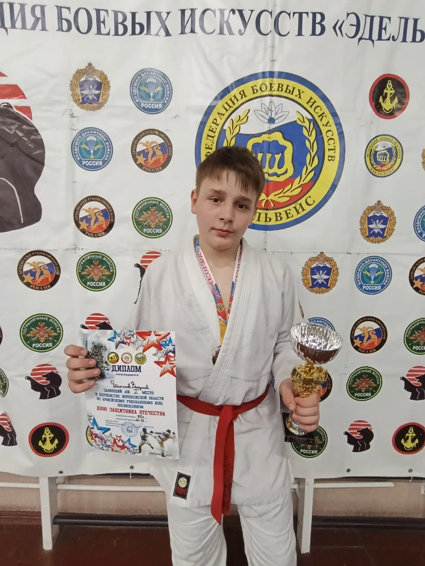 21 февраля ученик 6 "Б" класса Шатилов Владислав занял 1 место в Первенстве Воронежской области по Армейскому рукопашному бою, посвященном Дню Защитника Отечества! В соревнованиях приняли участие 4 региона Черноземья.
