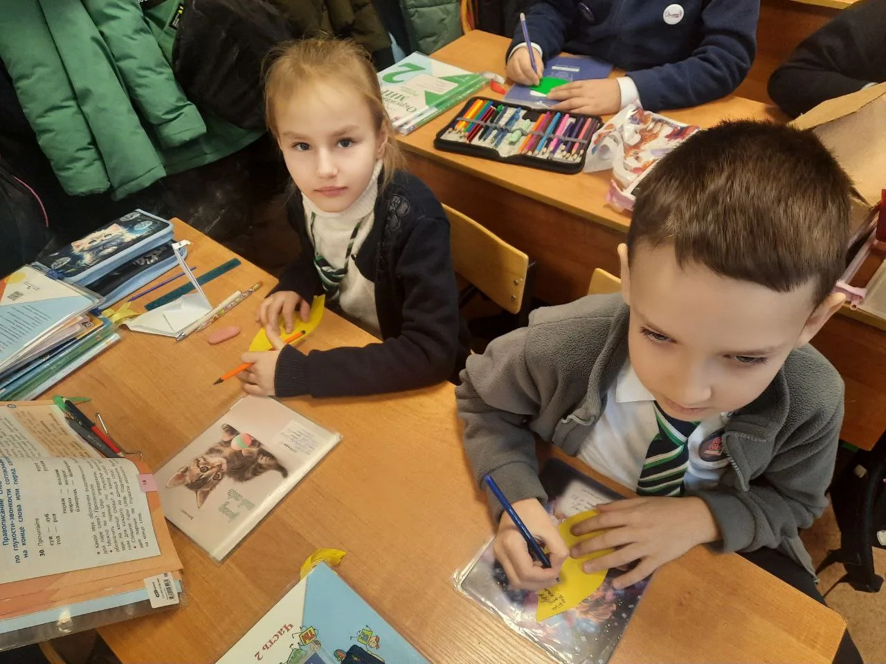 🔶 В рамках трека Орленок-доброволец по программе Орлята России ученики 1-4 классов под руководством старшеклассников-наставников и классных руководителей приняли участие в акции «Дерево доброты». Ребята изобразили дерево, на листьях которого написали пожеланиями мира и добра. В конце занятия ученики обсудили тему: «Как мы можем делать мир добрее?».