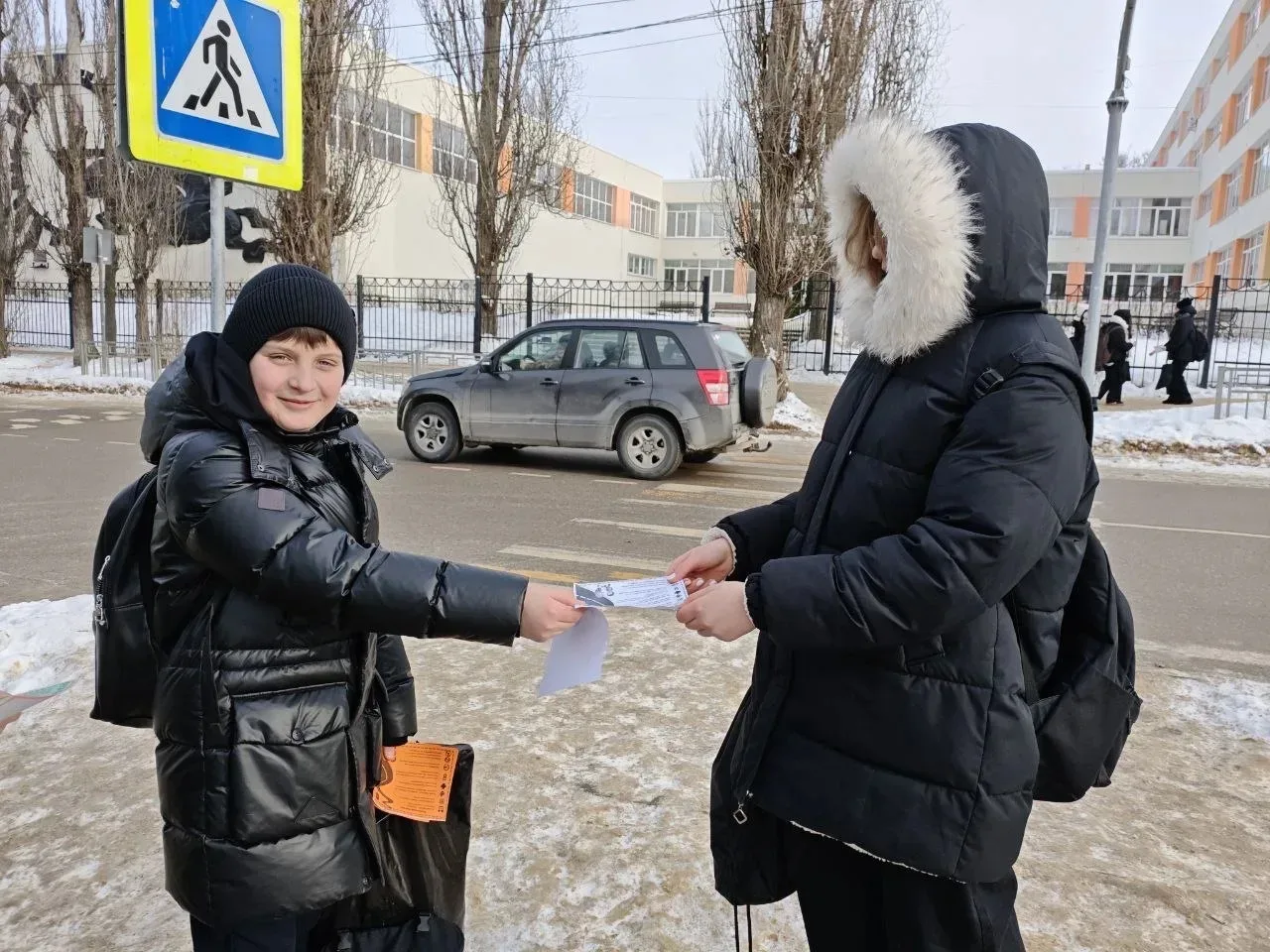🚦Школьники напомнили правила дорожного движения пешеходам и раздали наглядные памятки на улице Шендрикова.