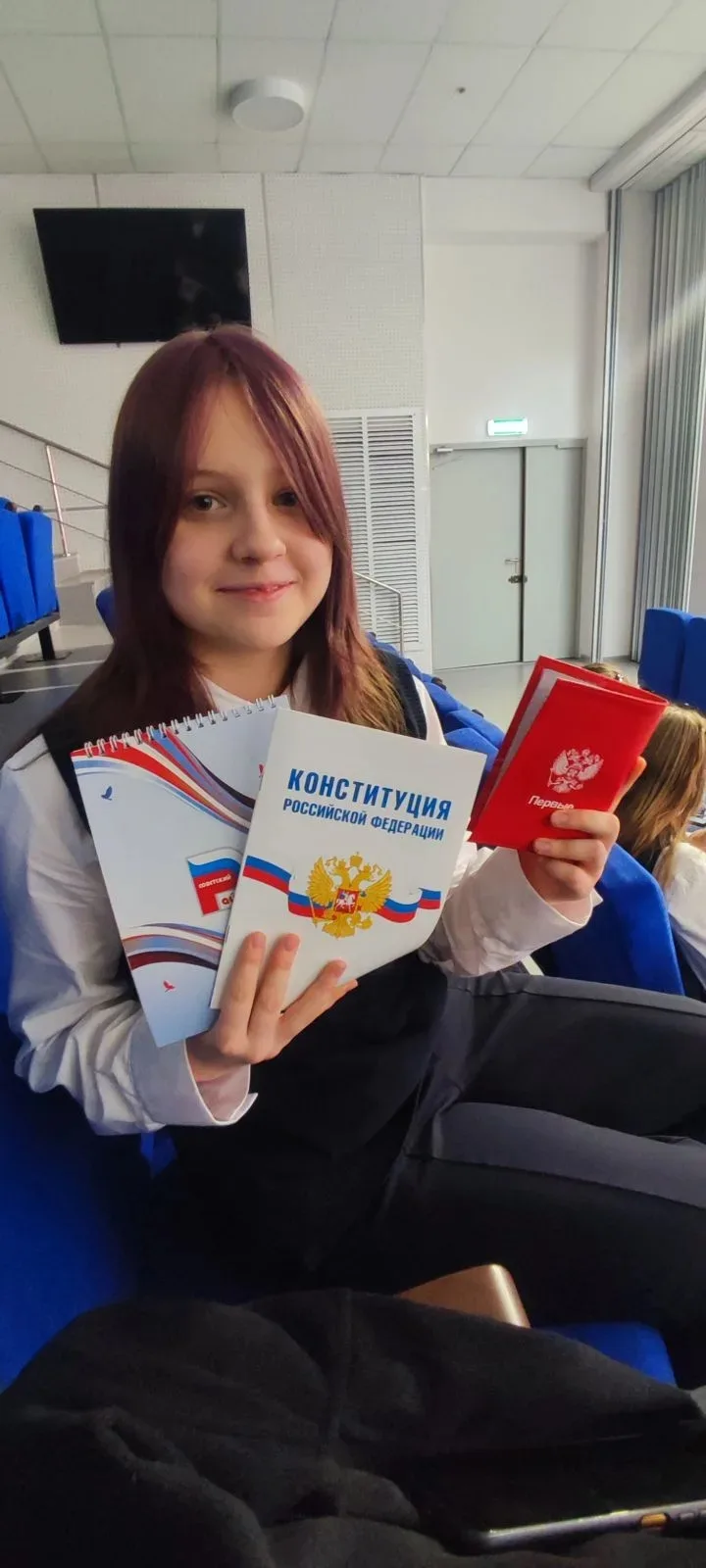 18 февраля ученицы нашей школы приняли участие в церемонии вручения паспортов в рамках федерального проекта «Мы — граждане России» от Движения Первых.