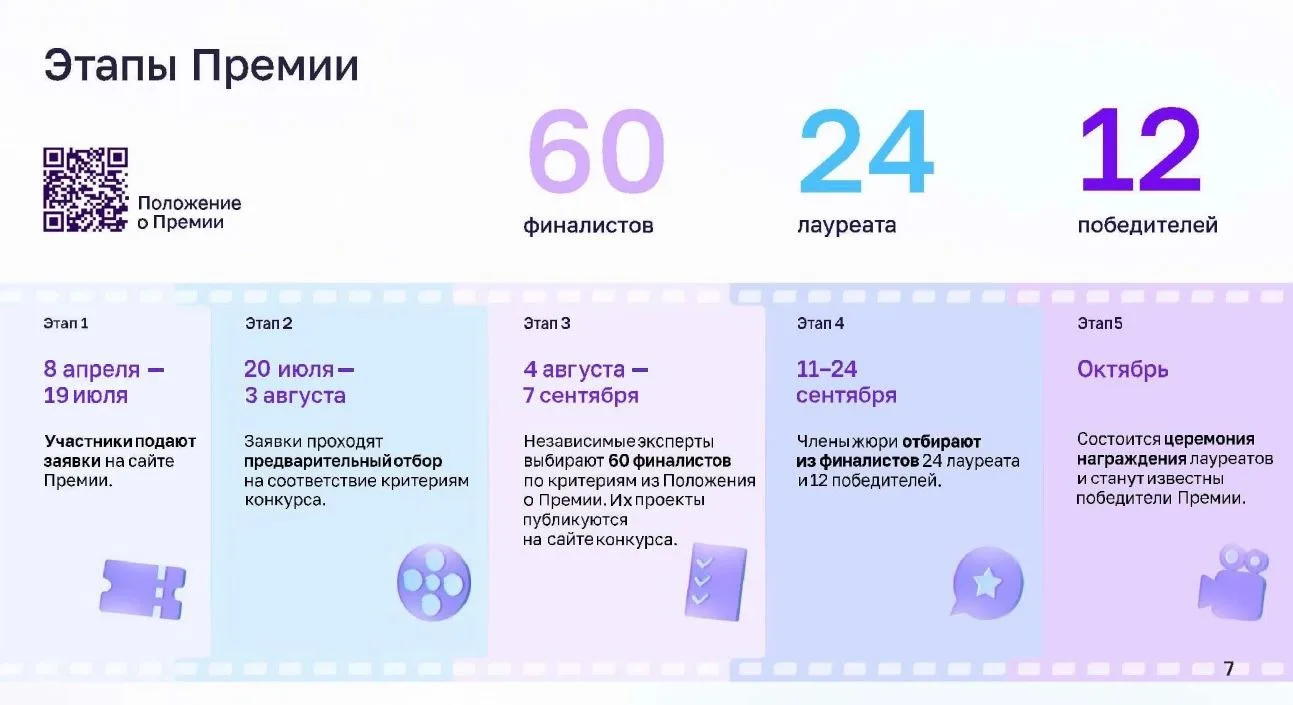 Прием заявок на участие в Премии начнется 8 апреля 2026 года и продлится до 19 июля 2026 г. Участие в Премии бесплатное. Церемония награждения пройдет в октябре 2026 года в Москве.