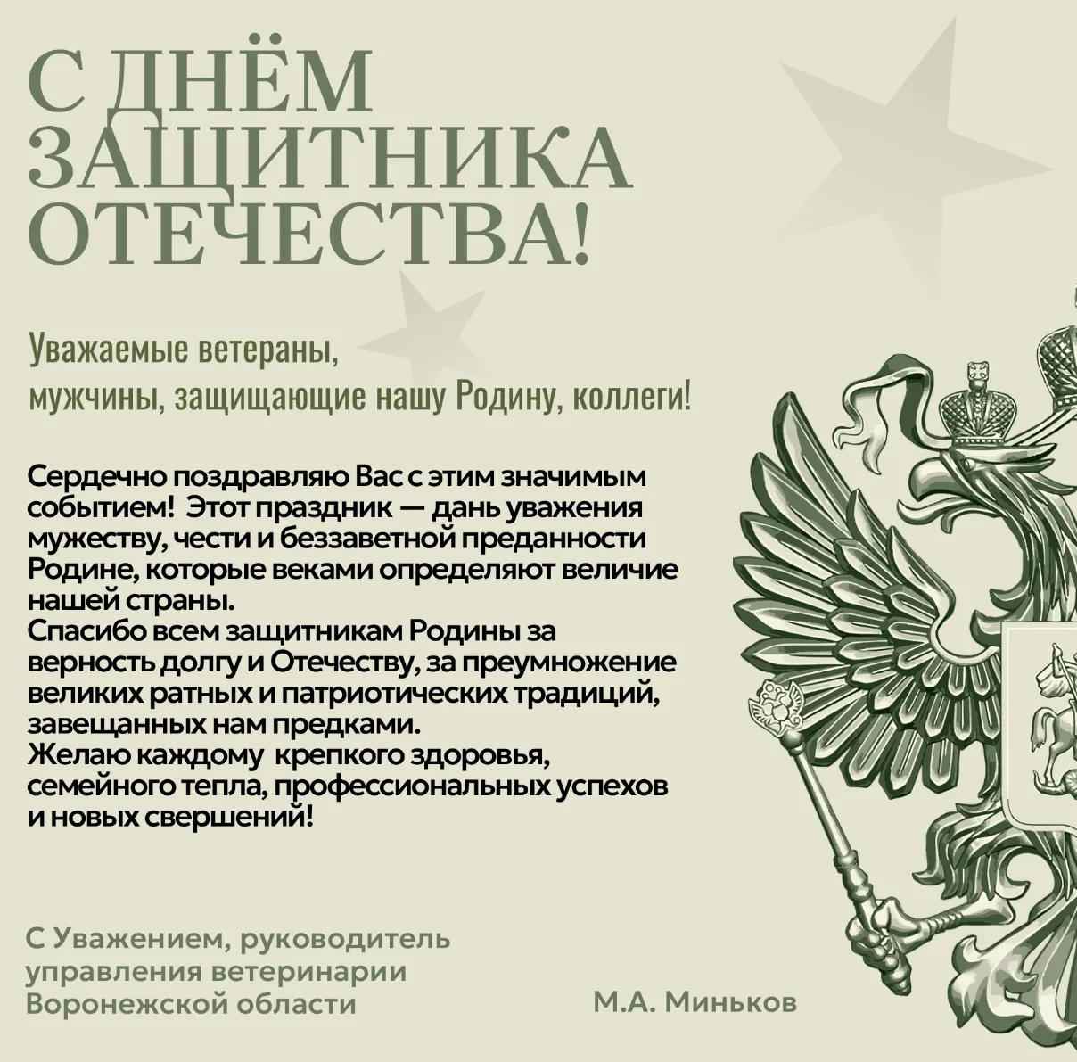 С Уважением, руководитель управления ветеринарии Воронежской области М.А. Миньков