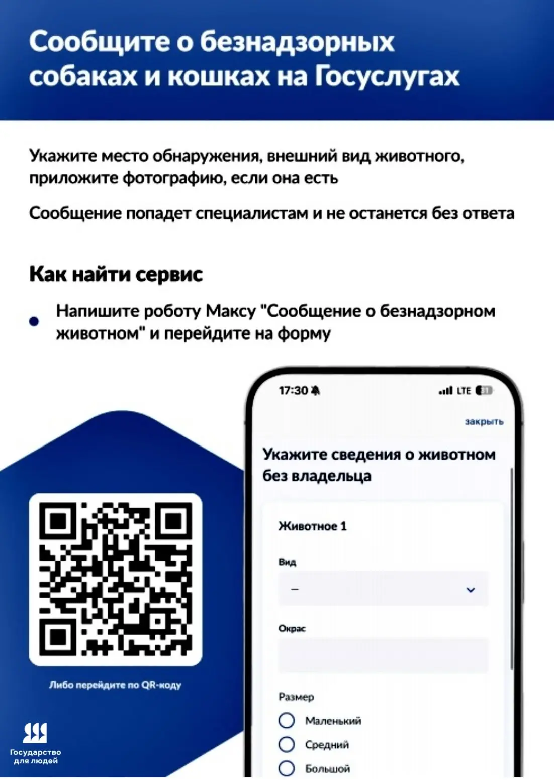 На «Госуслугах» появился новый сервис, позволяющий гражданам оперативно сообщать об обнаруженных животных без владельцев.