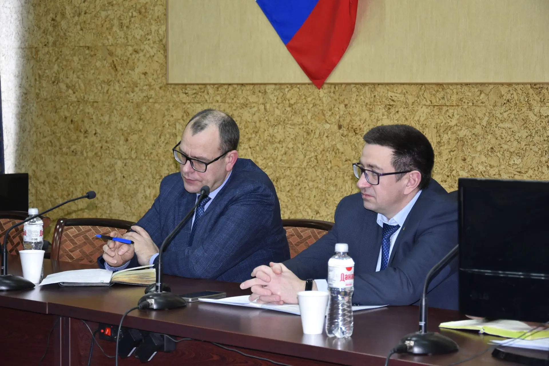 С докладами о проделанной работе выступили заместитель руководителя управления ветеринарии - начальник отдела организации противоэпизоотических мероприятий, лечебной и лабораторной работы Сергеев Ю.В., начальник отдела экономического анализа и бухгалтерского учета Сабинин А.Н., руководитель БУВО «Облветстанция» Архипов А.С.