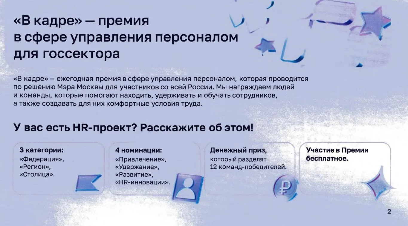 Решением Мэра Москвы Правительство Москвы проводит премию в сфере управления персоналом в госсекторе «В кадре»