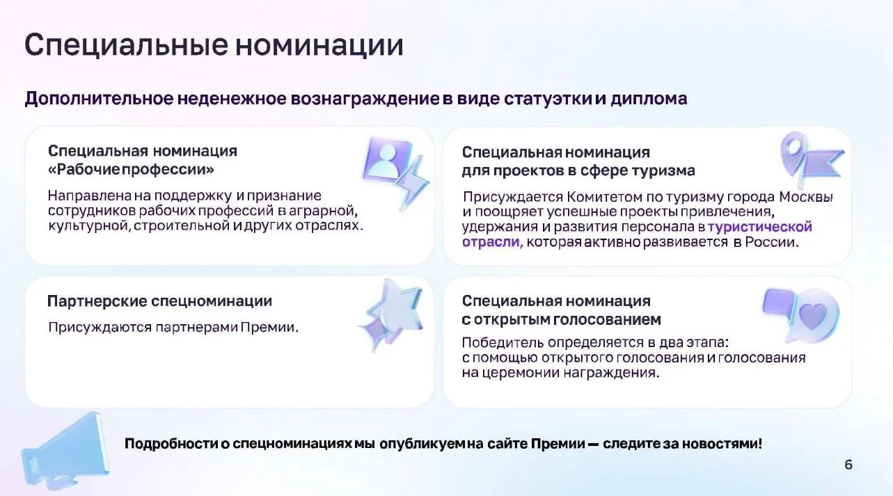 Для победителей предусмотрены денежные призы, а также упоминания в крупнейших российских СМИ. Кроме того, в этом году в рамках конкурса будет расширен список специальных номинаций, что увеличивает шансы для команд получить признание и обеспечить своим проектам широкую огласку в профессиональной среде.