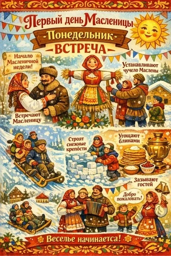 🥞В России традиционно отмечают Масленичную неделю, которая проходит с 16-22 февраля 2026 года. А вот некоторые традиции Масленицы: