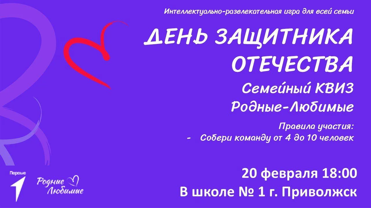 Приглашение на семейный квиз «Родные‑Любимые» ко дню защитника отечества!