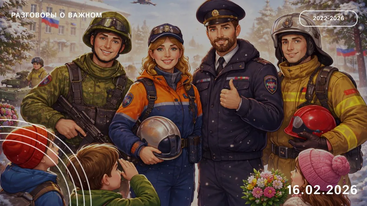В преддверии 23 февраля мы предлагаем поговорить с ребятами о тех, кто живёт и служит рядом с нами: о военнослужащих, сотрудниках силовых структур и спасательных служб, ветеранах, людях, которые своим трудом обеспечивают безопасность страны и спокойствие граждан.