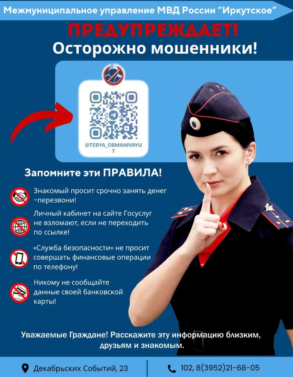 Отдел полиции -4 МУ МВД России «Иркутское» предупреждает: