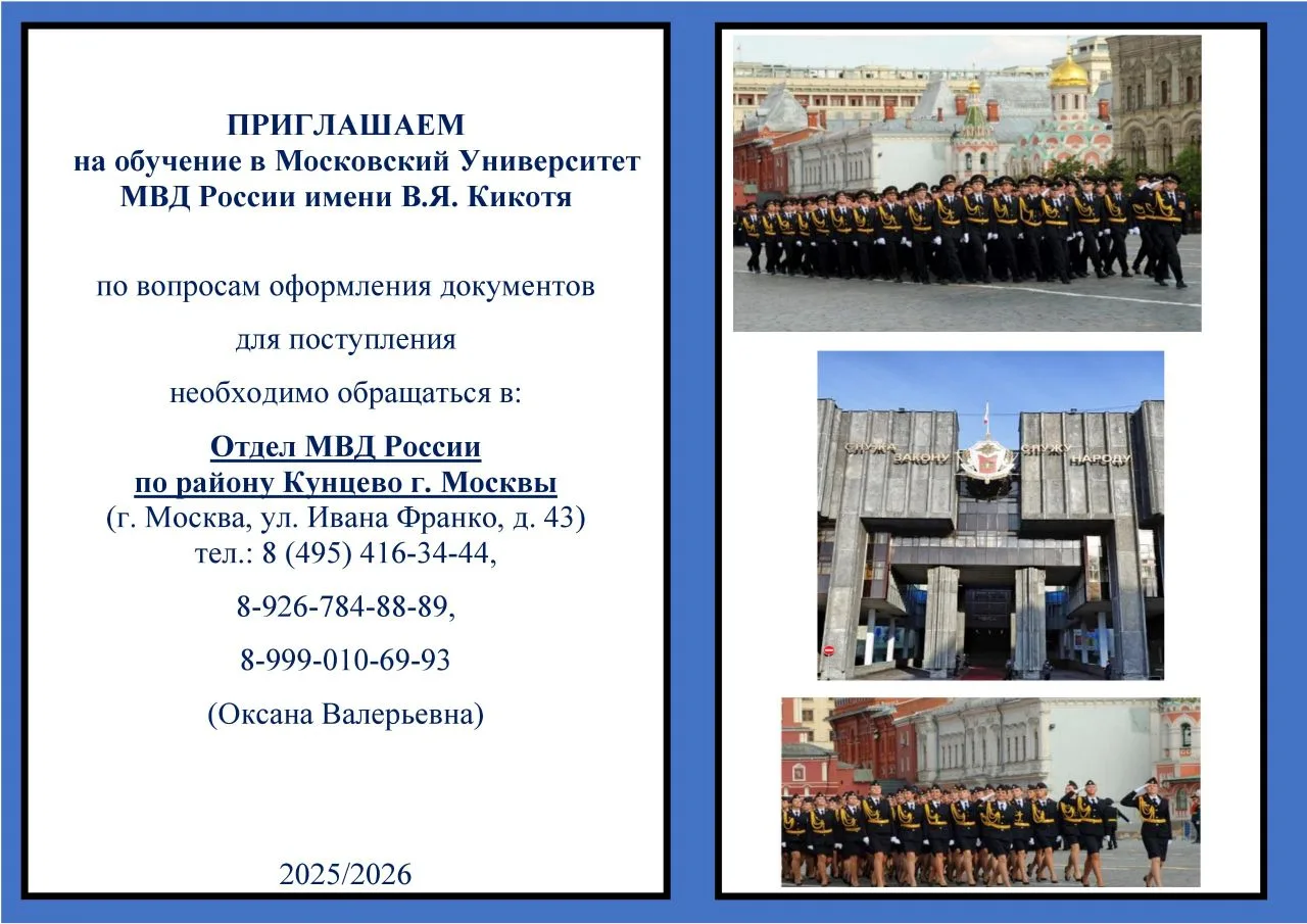 Информация для выпускников 11-ых классов и их родителей об осуществлении набора кандидатов на обучение в Московский университет МВД России им. В.Я. Кикотя