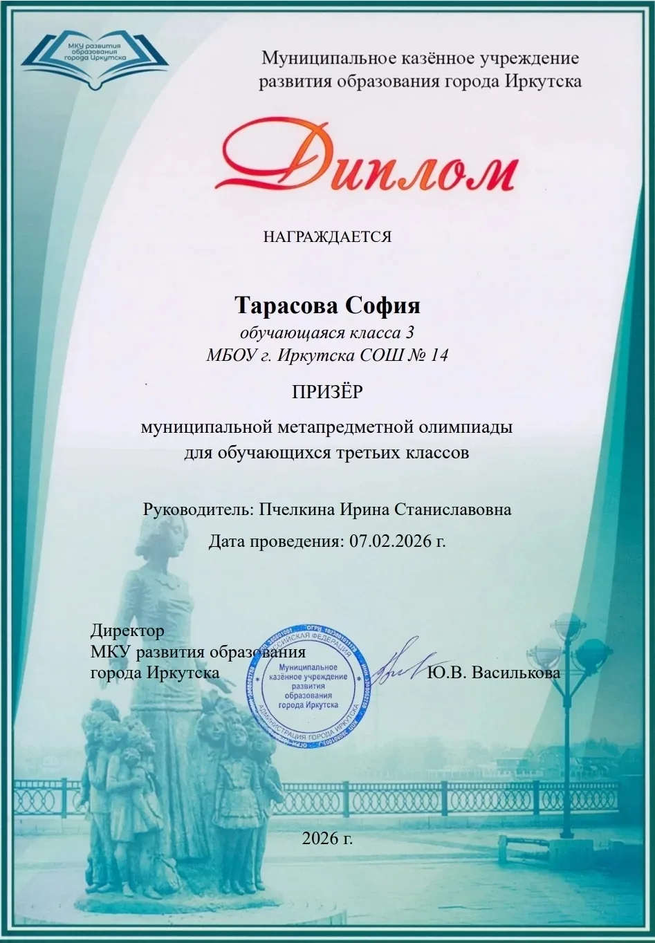 Поздравляем Тарасову Софию и Ирину Станиславовну !!! Радуемся и гордимся! Новых вам удач и побед!!!!!68 третьеклассников участвовали в конкурсе!!! Умница, София!!!