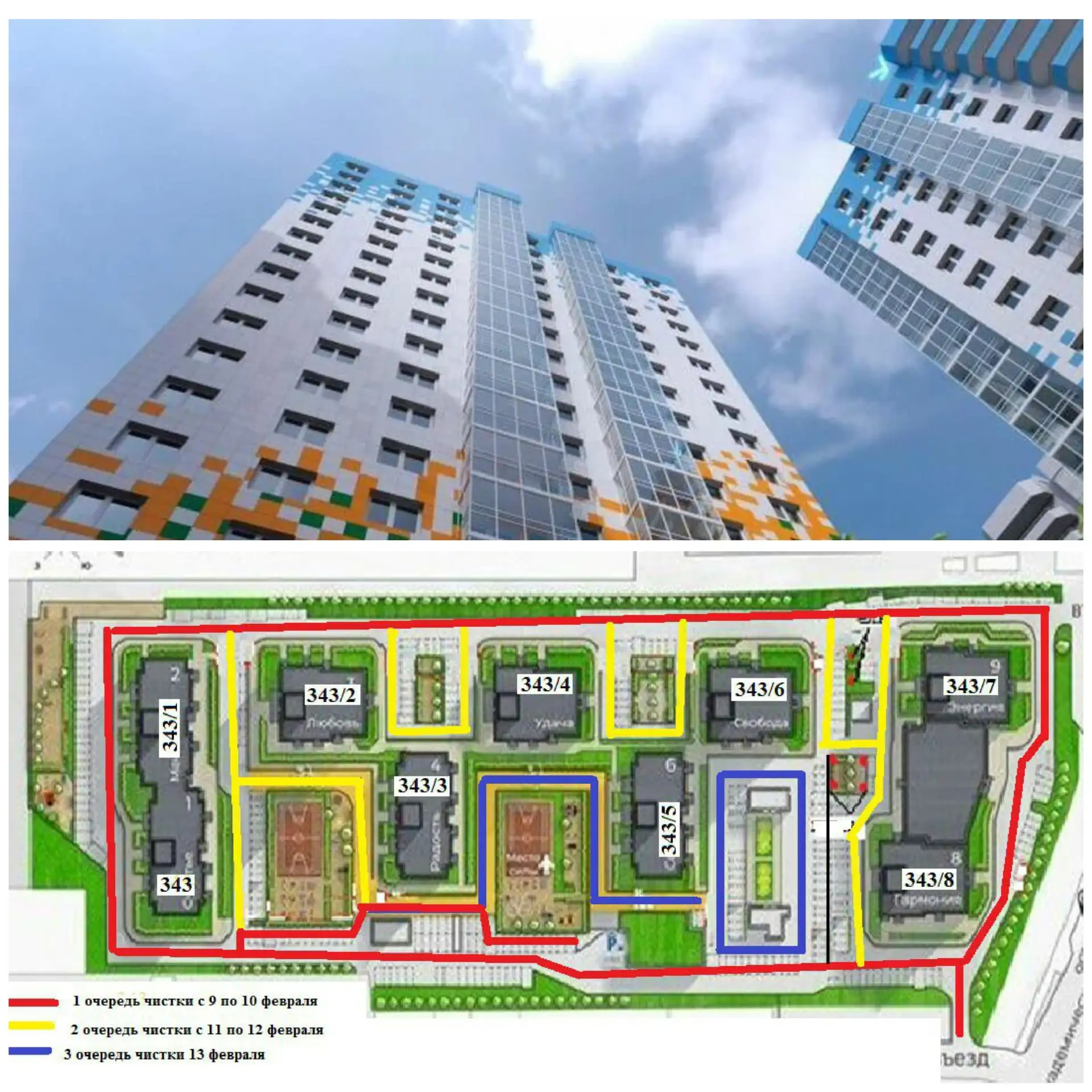 На понедельник, 2 февраля, запланирована механизированная уборка в следующих жилых комплексах: