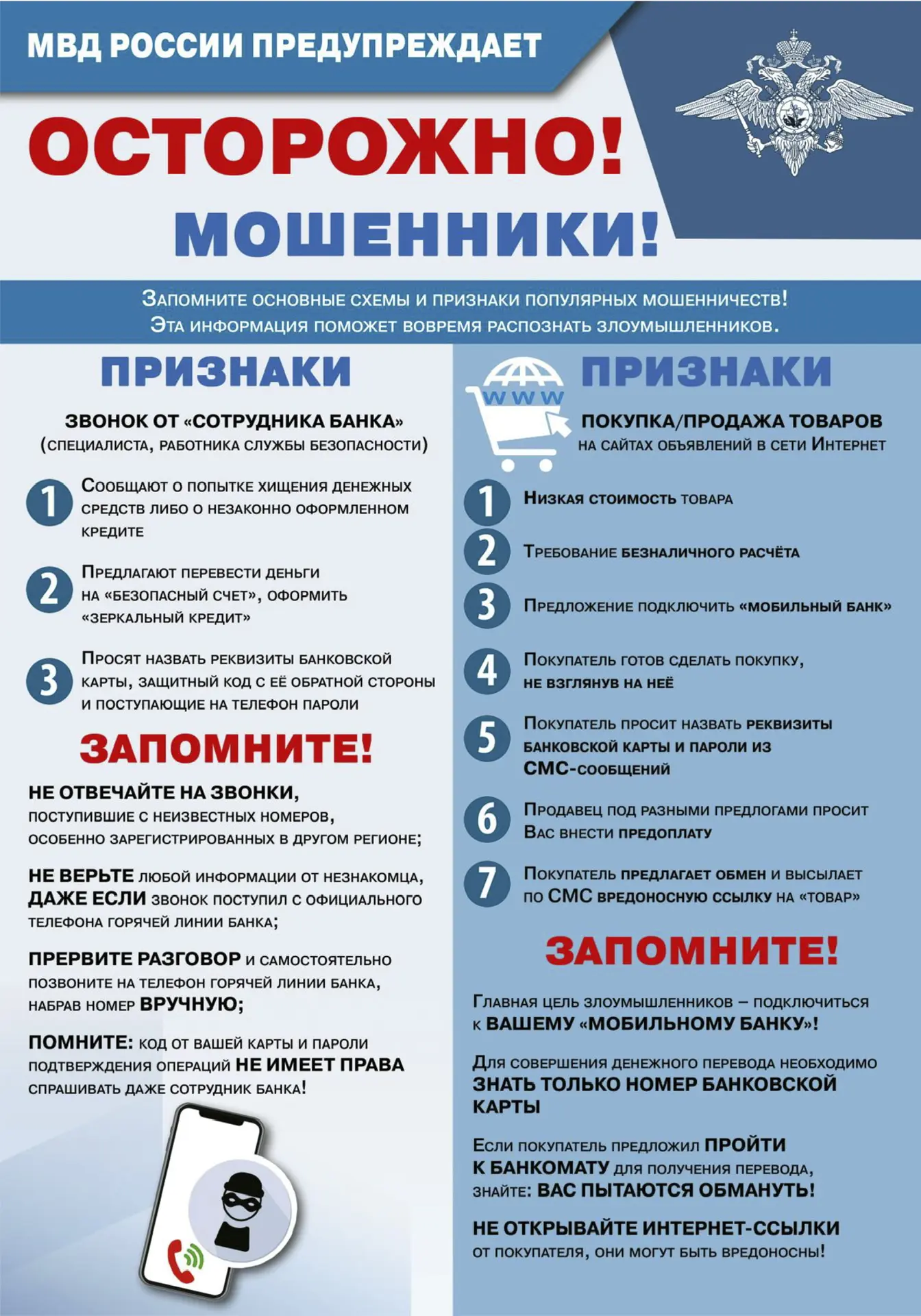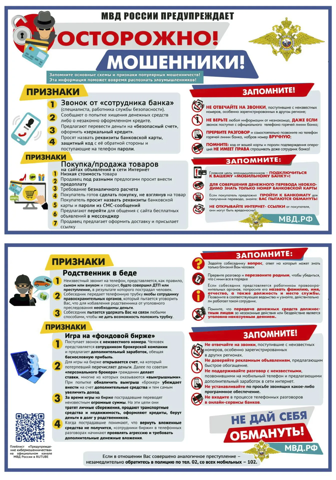 📣 В целях вашей безопасности и пресечения хищений денежных средств граждан, публикуем важный информационный материал для ознакомления, который содержит детальный разбор наиболее распространенных схем мошенничества, подготовленный ГУ МВД по Иркутской области.