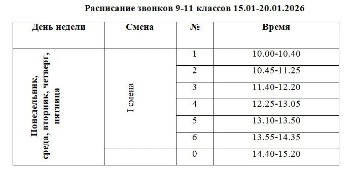 ❗️Расписание звонков для 1-4, 5-8 и 9-11 классов!