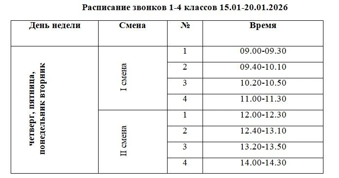 В связи с резким понижением температуры воздуха, учащиеся 1 - 8 классов в период с 15.01.2026г. по 20.01.2026г., будут обучаться в дистанционном режиме.