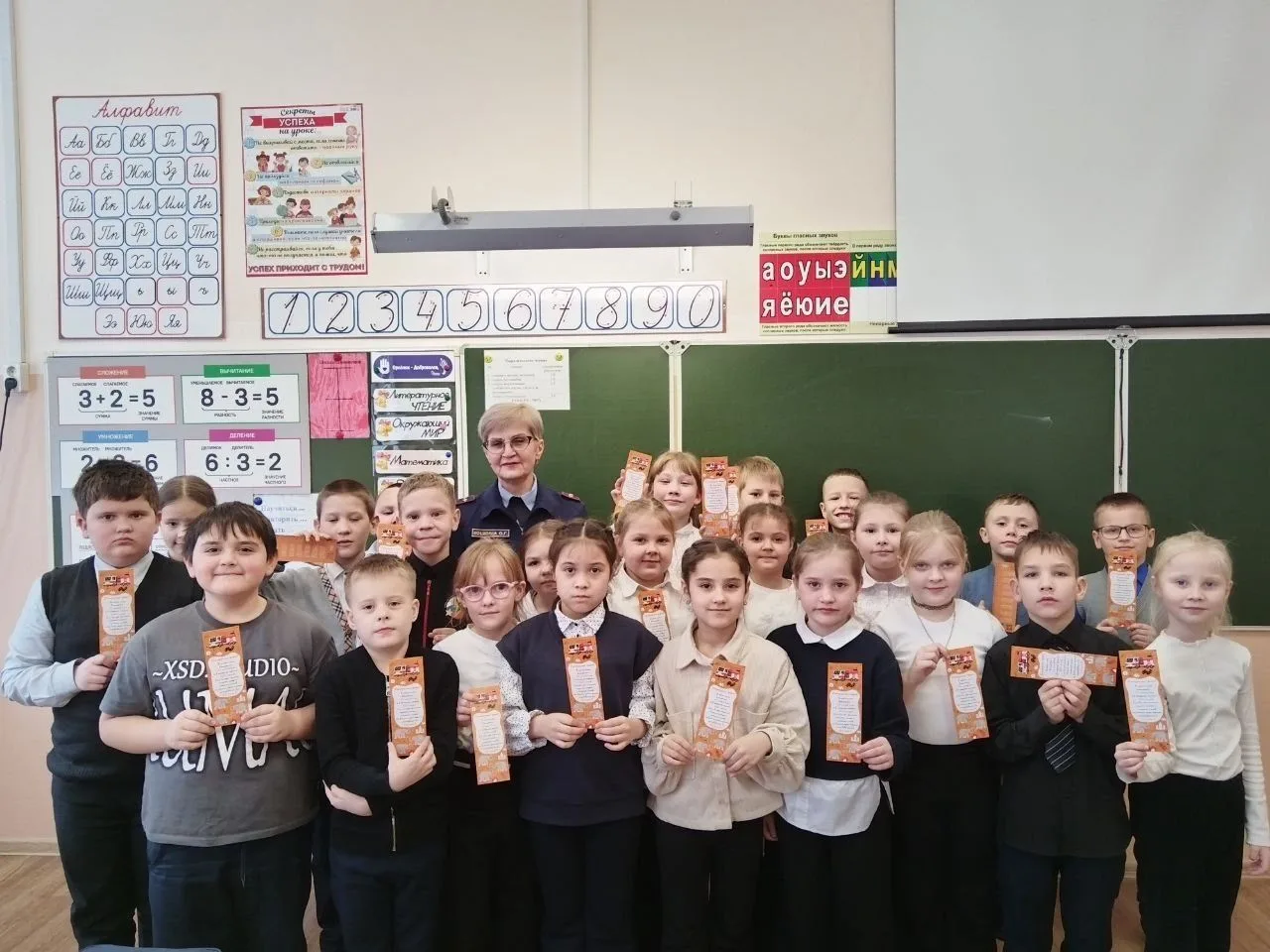 Мы торжественно вручили подарки нашим орлятам и их классным руководителям. Это особенный момент: встреча с дружеским приветом из другой школы, возможность почувствовать, как далеко простирается круг «Орлят», и как много у нас единомышленников, готовых делиться добром и радостью.