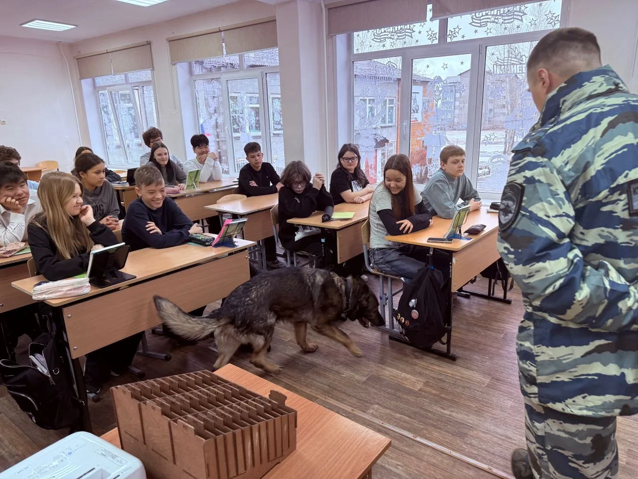 Но на этом встреча с представителями МВД не закончилась. 🔥 Настоящий шквал эмоций и интереса вызвало показательное выступление для учеников 7-х и 11-х классов. 🐾 Инспектор-кинолог Центра кинологической службы ГУ МВД России по Иркутской области прапорщик полиции Максим Александрович Новоселов продемонстрировал, как работают служебные собаки по поиску запрещенных веществ. 🐕🦺👮♂️