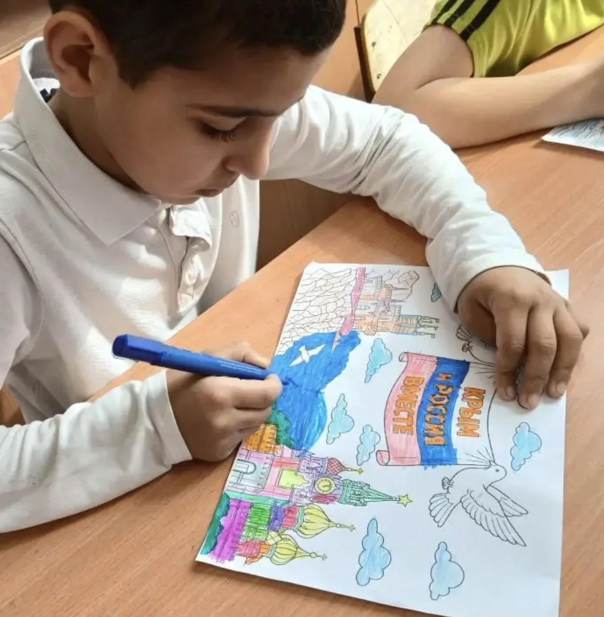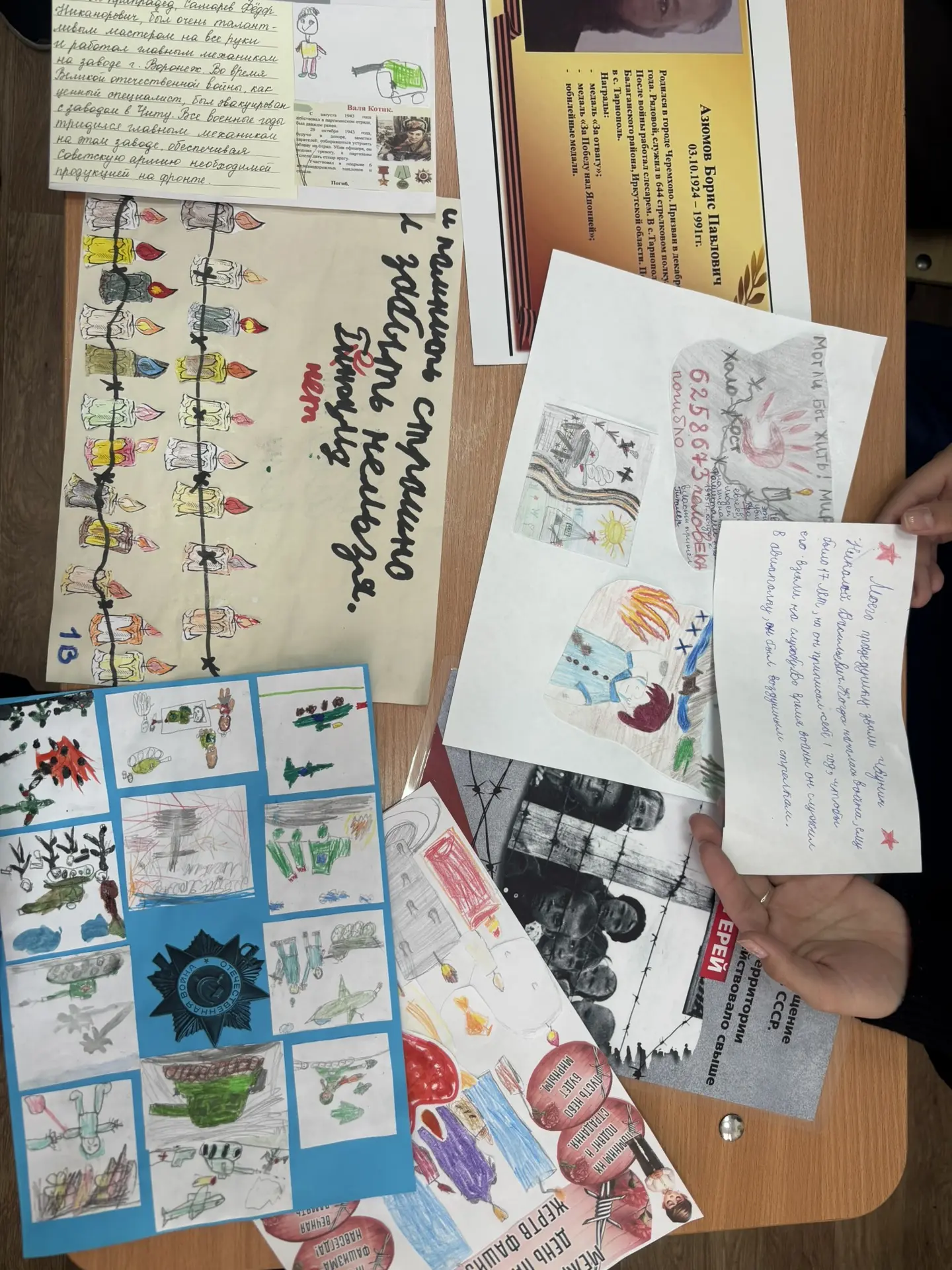 Каждый класс подготовил свою страницу памяти, это были страницы судьбы родственника, прошедшего войну, это были мысли и рассуждения детей о войне, рисунки печали и скорби, пожелания мирного неба над головой.