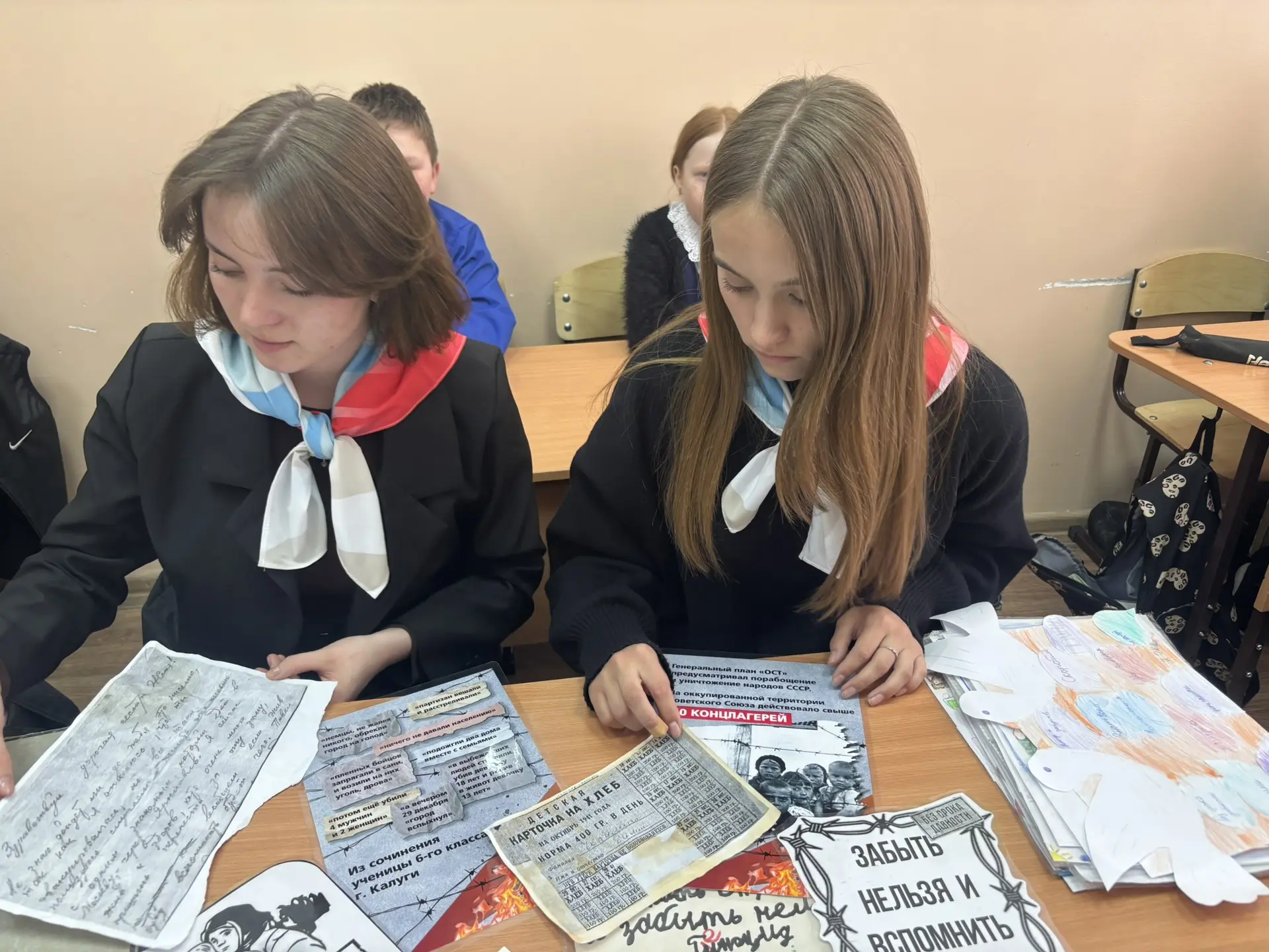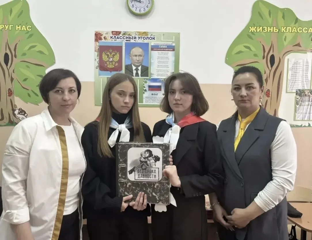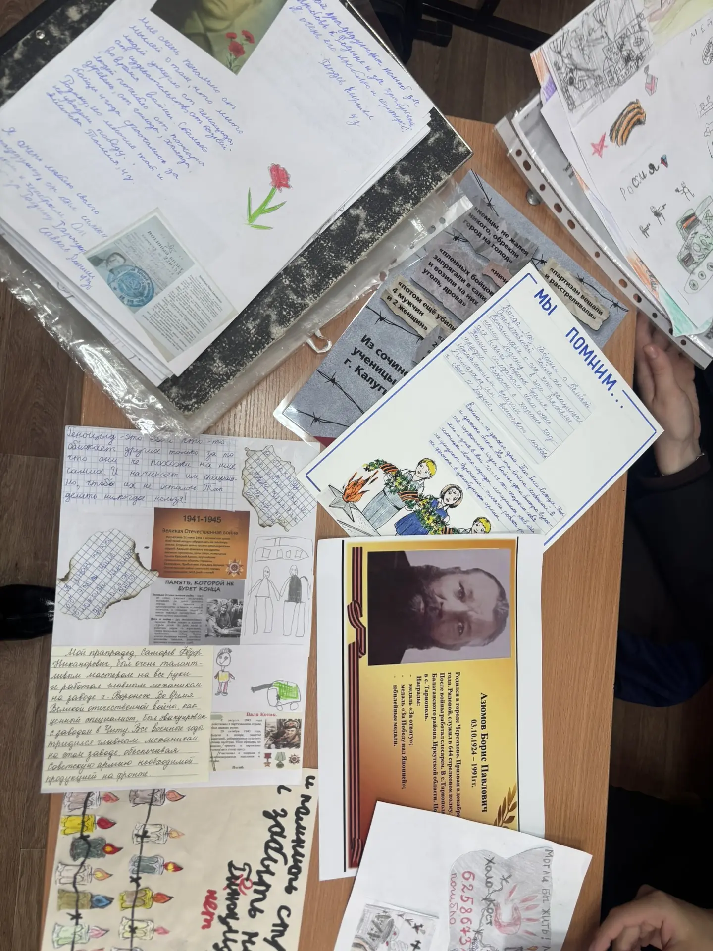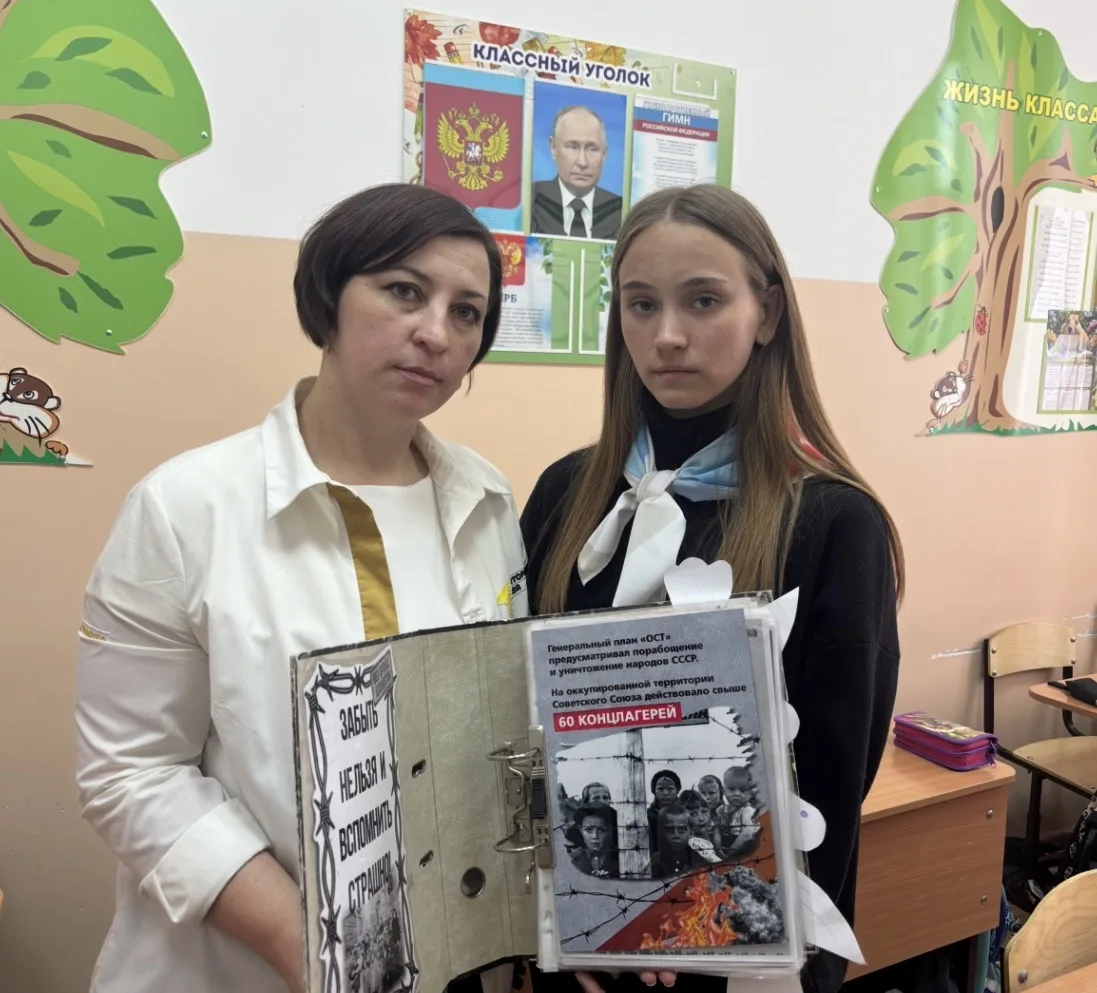 Далее совместно советники директора Алексеева О.А., Маркова Е.А. и наставники Орлят России Шалимова Ирина и Полоухина Дарья собрали все страницы в единую "Книгу Памяти" без срока давности.