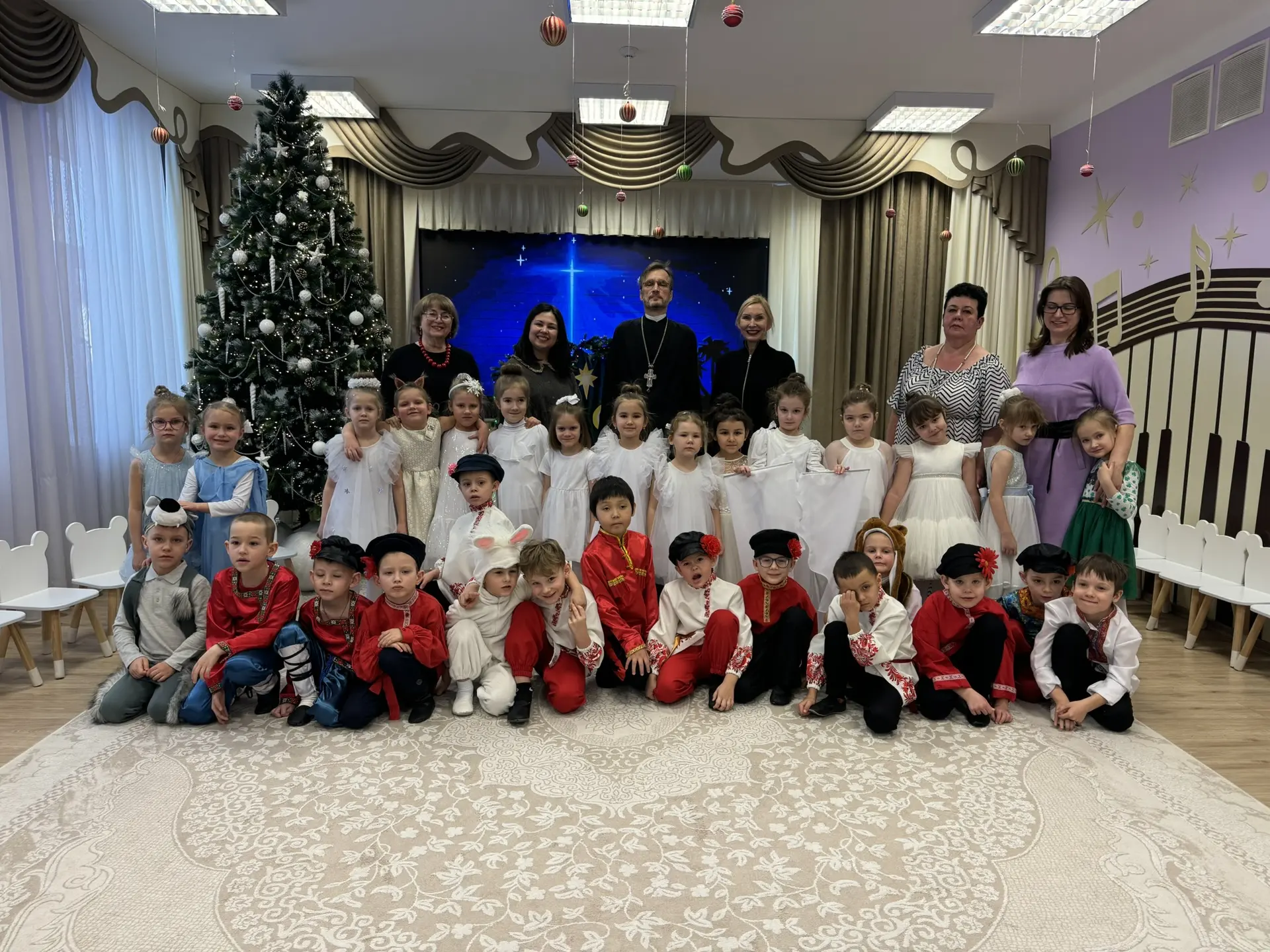 Прекрасный праздник подарили воспитанники подготовительной группы и их замечательные наставники. Трогательный рассказ о Рождестве Христовом в исполнении детей никого не оставил равнодушным, ни родителей, ни Отца Владимира Максимова, который традиционно уже бывает в нашей школе на подобных мероприятиях. Всех с праздником!