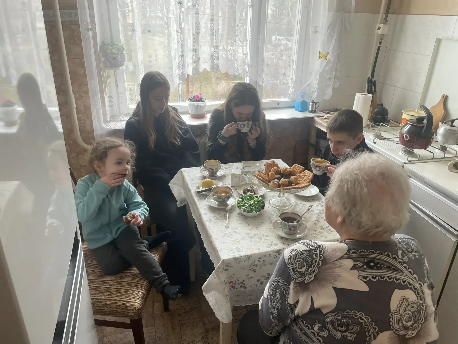 После уборки участка Валентина Фёдоровна всех ребят угостила чаем и сладостями, рассказывала истории из своей жизни, вспоминала учеников.