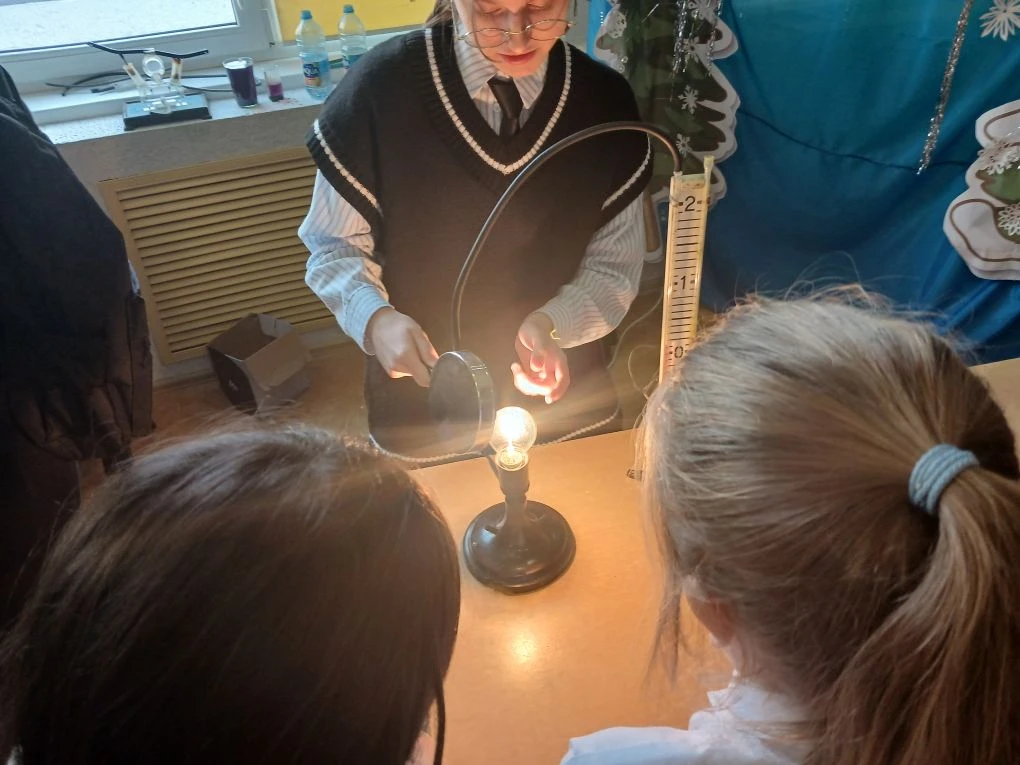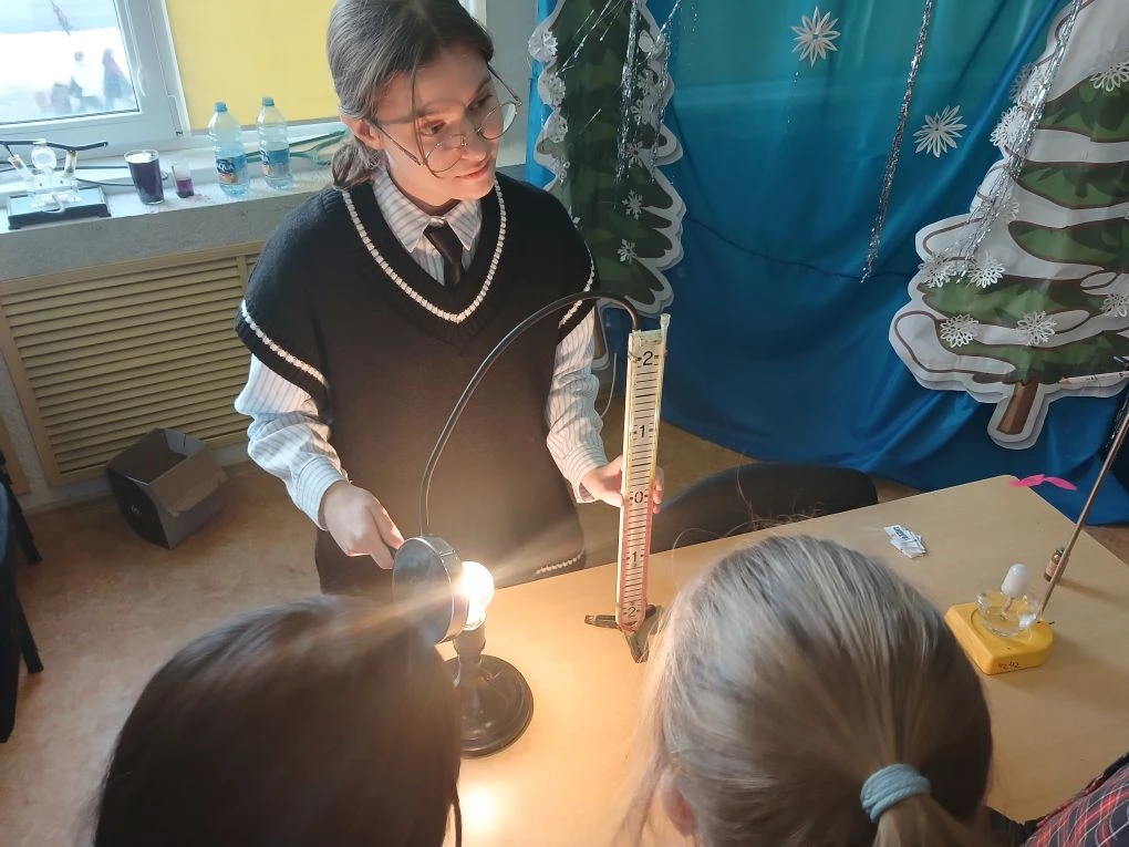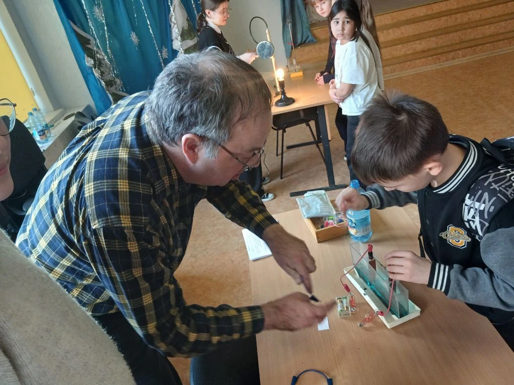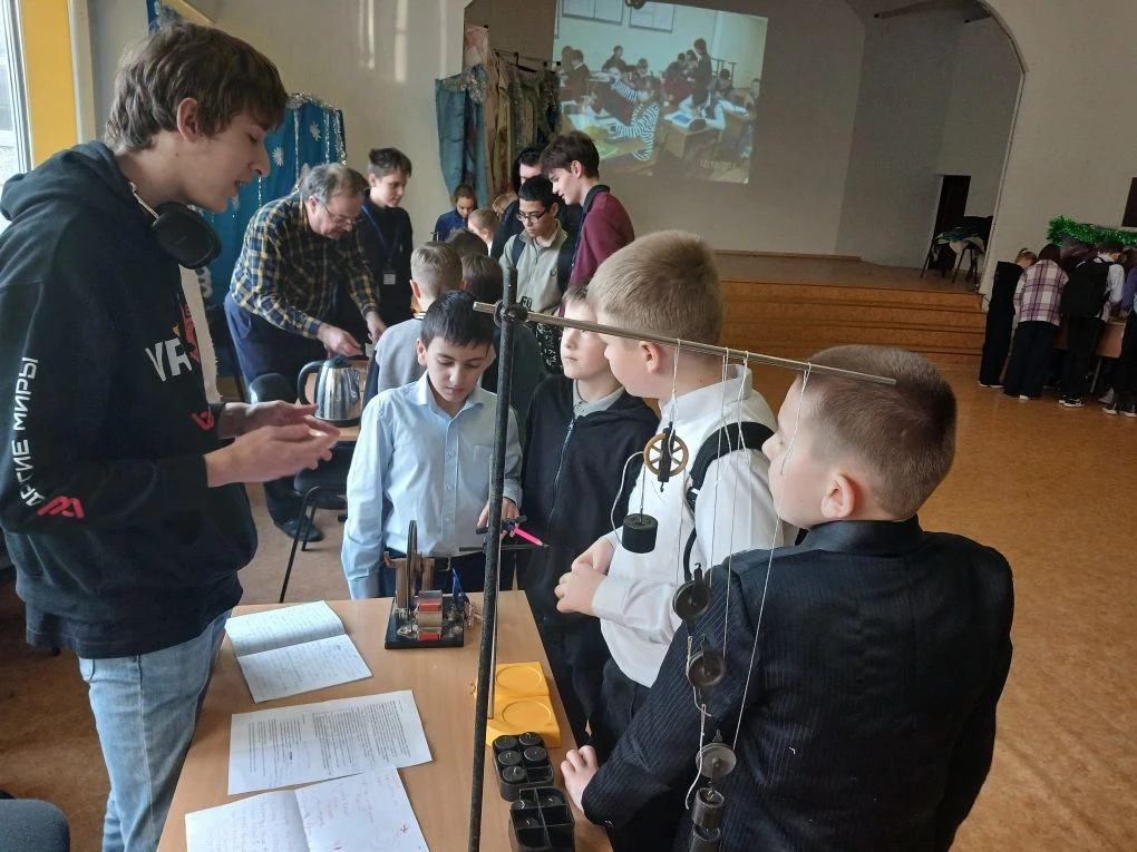 В пятницу, 16 декабря, уже не в первый раз в школе прошел большой физический интерактив. Это такое мероприятие, когда в течение целого дня под руководством старшеклассников желающие ученики всей школы проводят и анализируют различные физические эксперименты. Здесь и генерация электричества, и с электролиз, и с различные механизмы, и строение солнечной системы, и с теплопередача, и атмосферное давление. Мероприятие заметно объединяет, развивает, учит и мотивирует. Игровой элемент вносит возможность для каждого заработать "таланты"- жетоны, обмениваемые на призы."