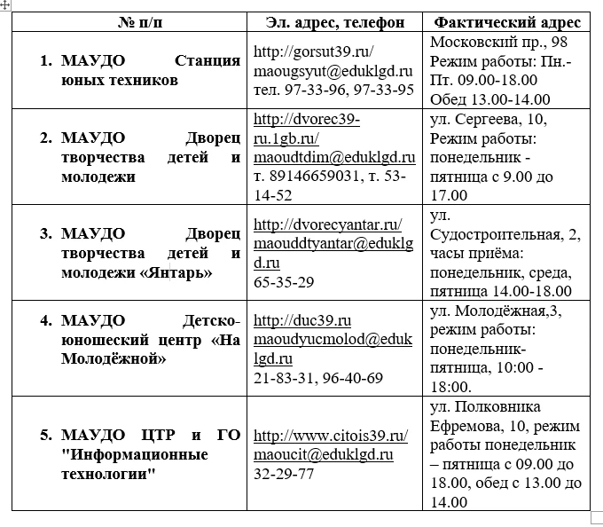 8. Помочь родителям в вопросах активации сертификатов и записи на программы дополнительного образования, кроме муниципального опорного центра города Калининграда могут учреждения дополнительного образования города Калининграда: