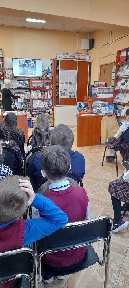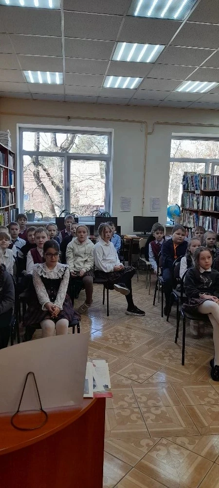 Сегодня, 10 апреля, учащиеся 2 "Б" класса посетили библиотеку ДК "Машиностроитель", где была проведена беседа по теме: "9 апреля - День воинской славы".