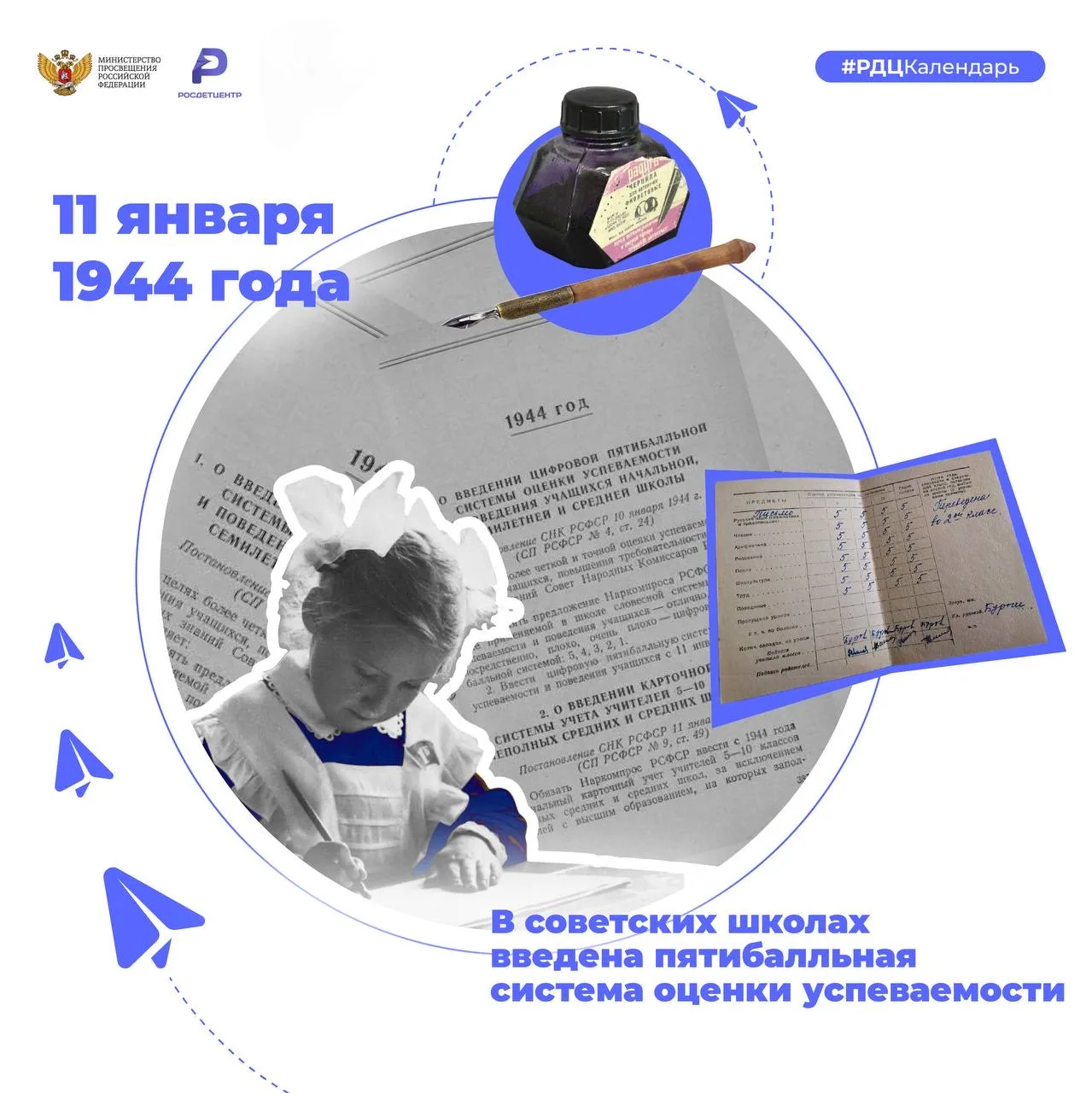 С 11 января 1944 года учителя оценивают знания советских школьников по единой пятибалльной шкале. Постановление об этом подписывает Совет Народных Комиссаров РСФСР днём ранее, 10 января. Теперь каждой оценке от 1 до 5 соответствуют четкие критерии, по которым педагог мог фиксировать результат обучения. Так, пятерка говорит, что ученик полностью усвоил материал и может свободно применять знания, а единица сигнализирует, что тема осталась неизученной.