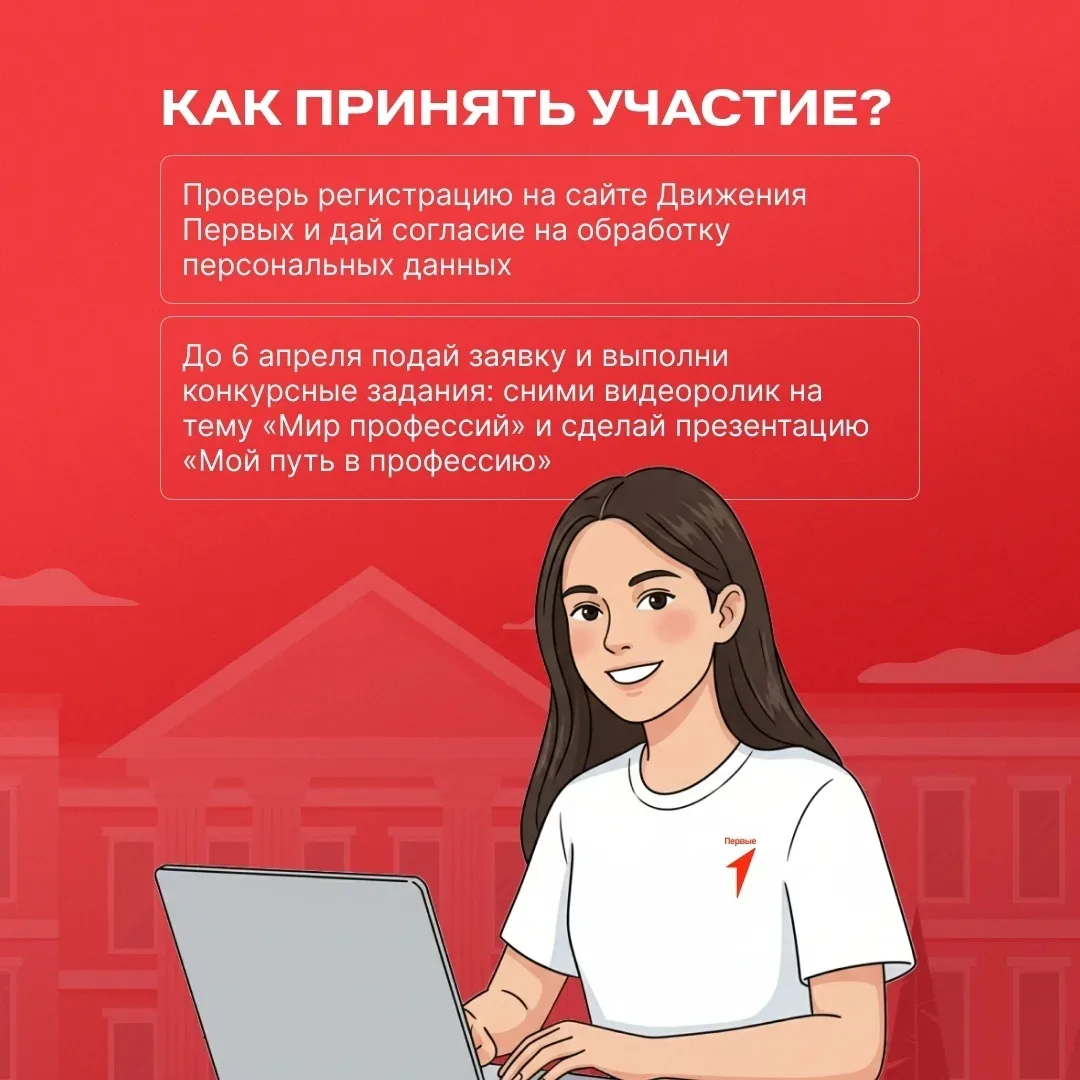 Подробнее о том, как стать участником проекта Движения Первых (https://vk.ru/club214524833) читай на карточках ⬆ и подавай заявку — vk.cc/cV61rA