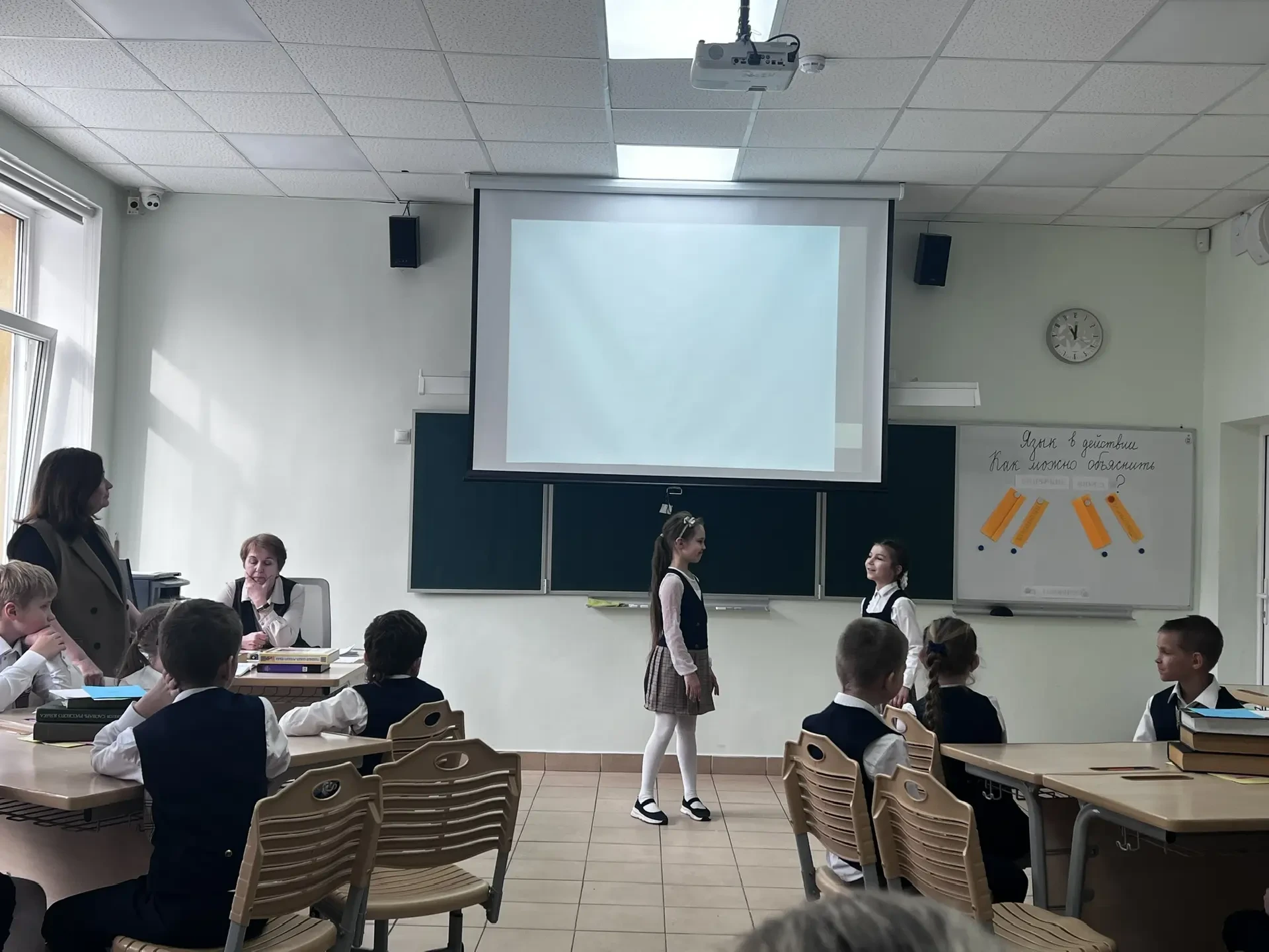 В первой части семинара педагоги лицея провели открытые уроки и мастер-классы, на которых педагоги на примере современных и классических произведений литературы обсуждали с детьми этические и нравственные проблемы, а также демонстрировали новые методы и способы работы с учащимися. Например, открытый урок во втором классе "Язык в действии. Как можно объяснить значение слова?", в рамках которого учителя познакомились с интересной методикой объяснения значения различных слов на примере сказок А.С. Пушкина.