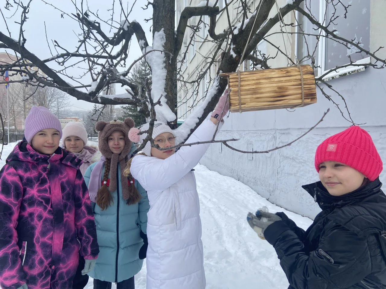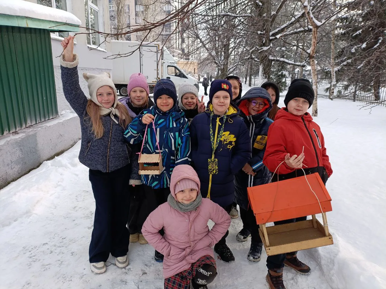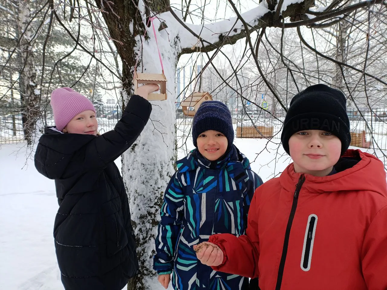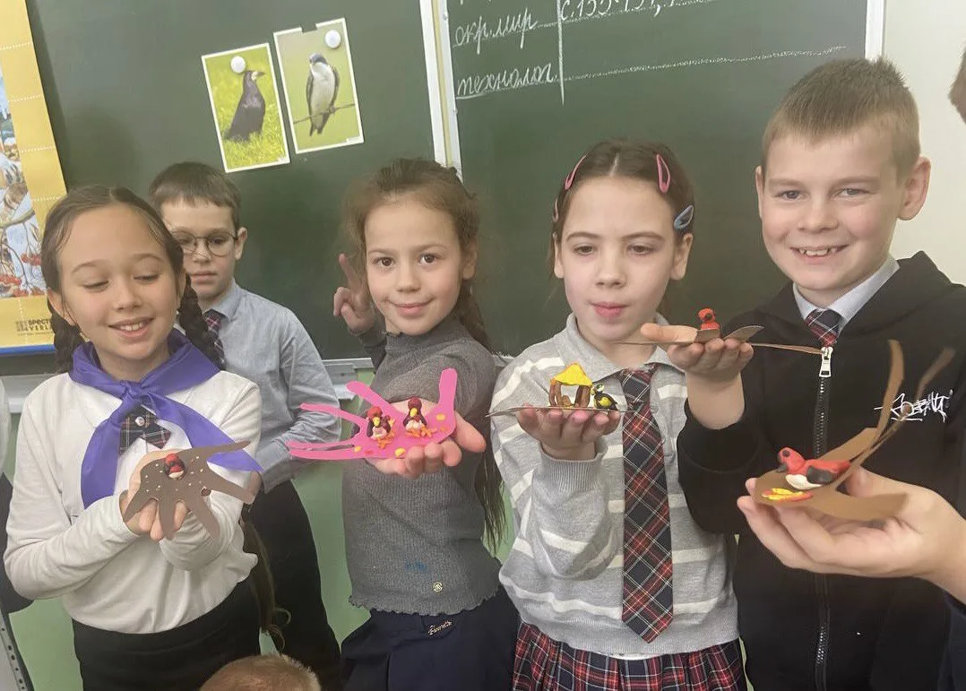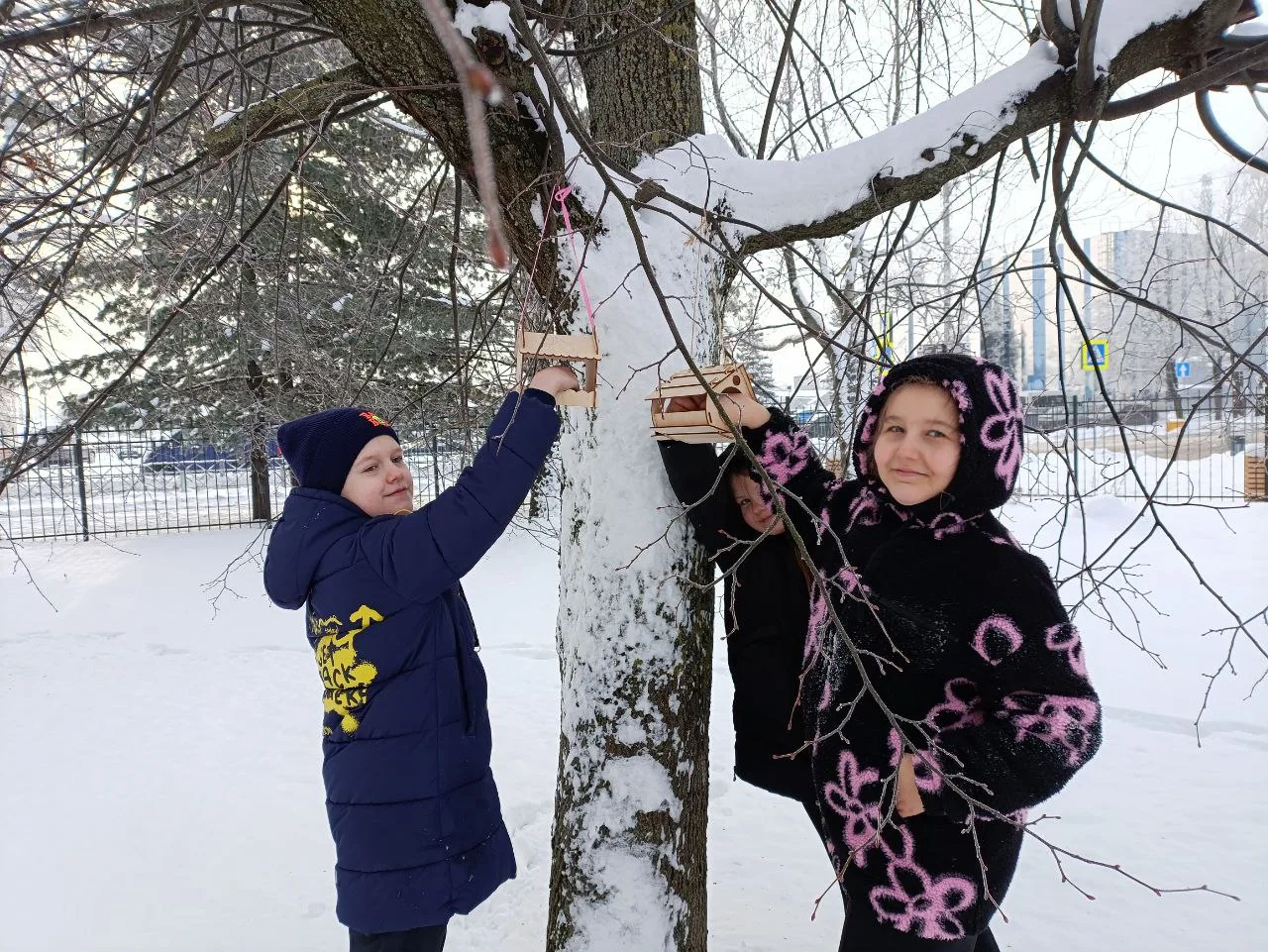 В рамках трека «Орлёнок‑доброволец» ученики начальной школы установили кормушки для зимующих птиц. Сейчас пернатым особенно тяжело добывать пищу — холодная погода, короткий световой день и снежный покров значительно ограничивают доступ к естественным источникам корма.