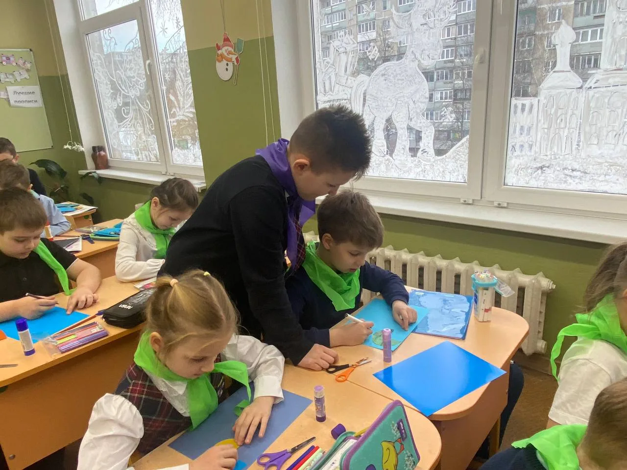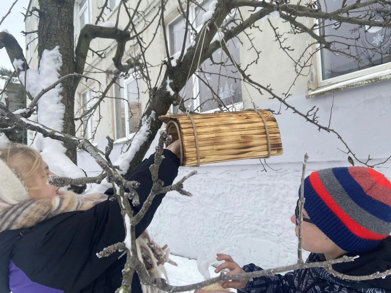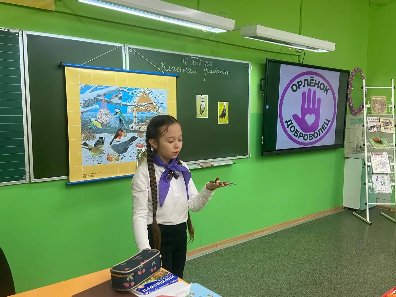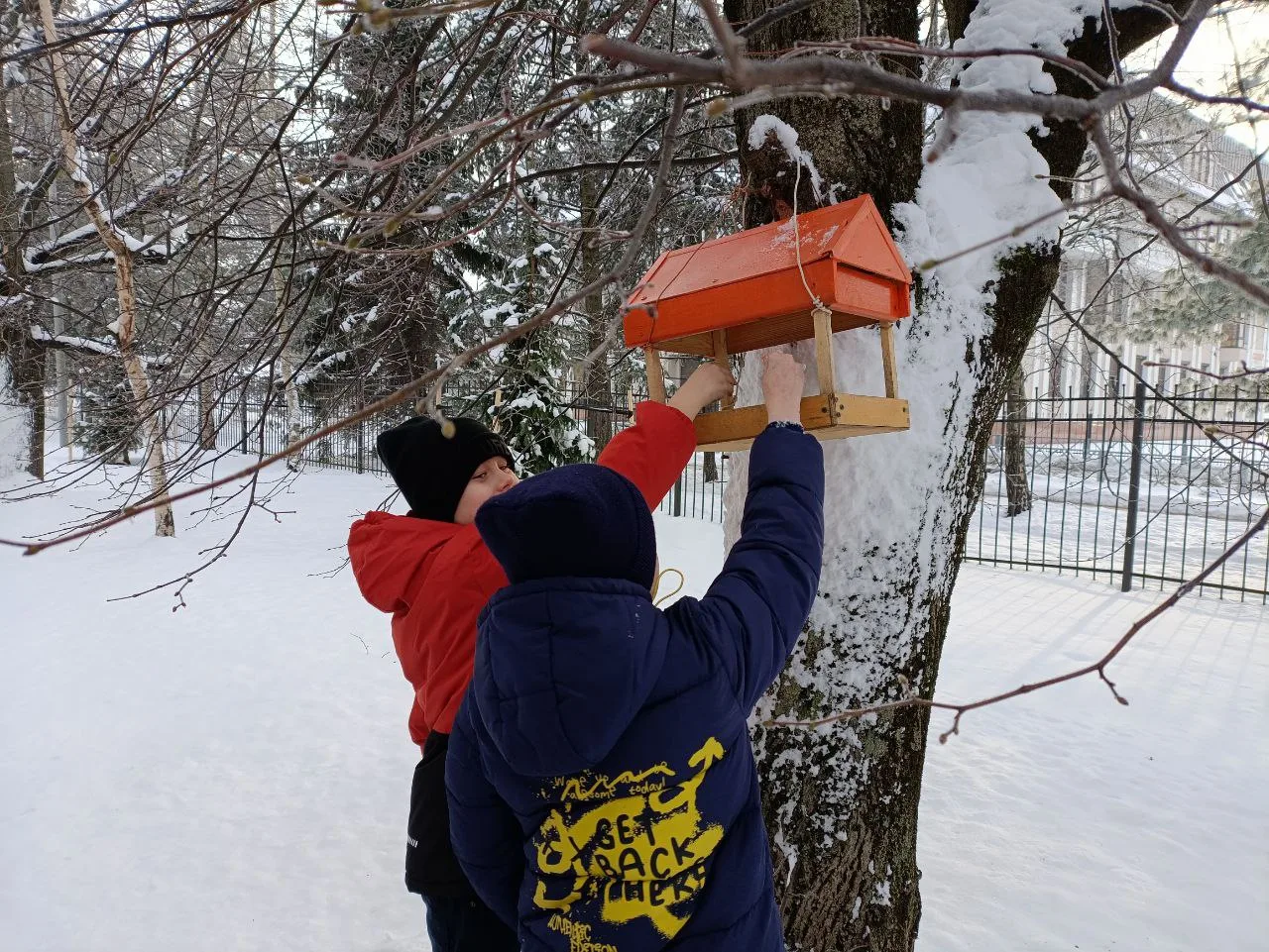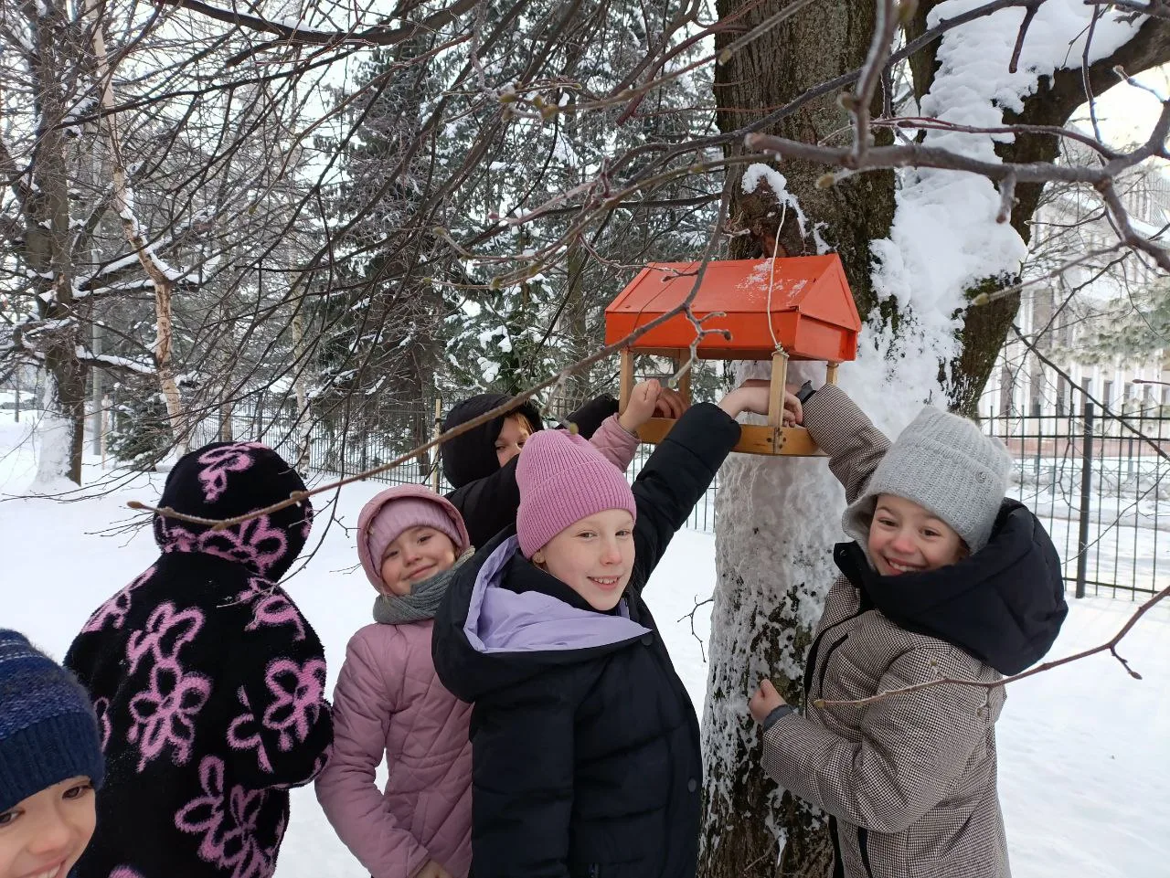 В рамках трека «Орлёнок‑доброволец» ученики начальной школы установили кормушки для зимующих птиц. Сейчас пернатым особенно тяжело добывать пищу — холодная погода, короткий световой день и снежный покров значительно ограничивают доступ к естественным источникам корма.