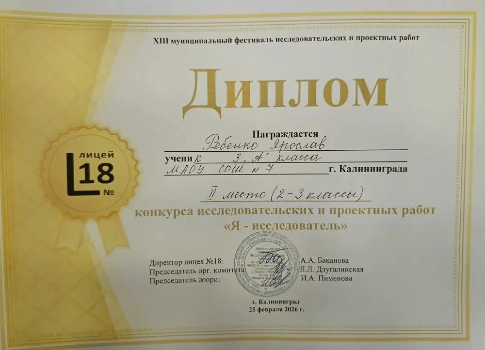 - 3 место — Виноградов Тихон, 4 «Б»класс.