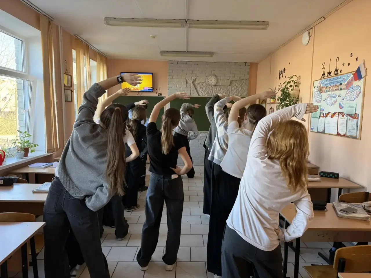 Вместо привычного отдыха за партами ребят ждали подвижные игры и зарядка под музыку. Волонтёры-старшеклассники помогали малышам размяться, подвигаться и получить заряд бодрости на оставшиеся уроки.
