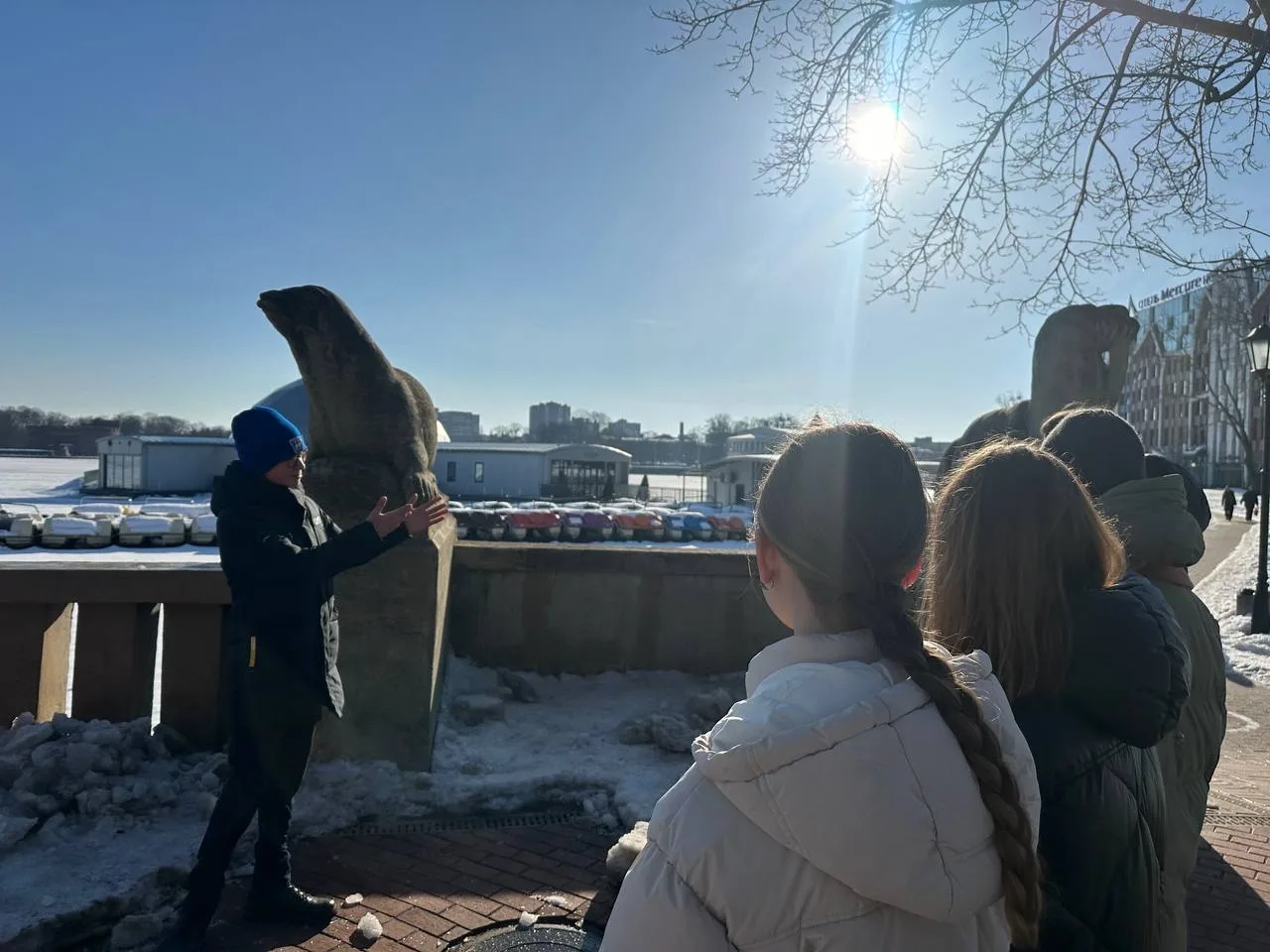 Активисты Движения Первых не только учатся и участвуют в событиях, но и находят время на изучение истории своего района. На этой неделе Роман Туровцев, активист Движения, провел для Совета обучающихся экскурсию по Верхнему озеру, уделив особое внимание скульптурам морских животных Германа Тиле.