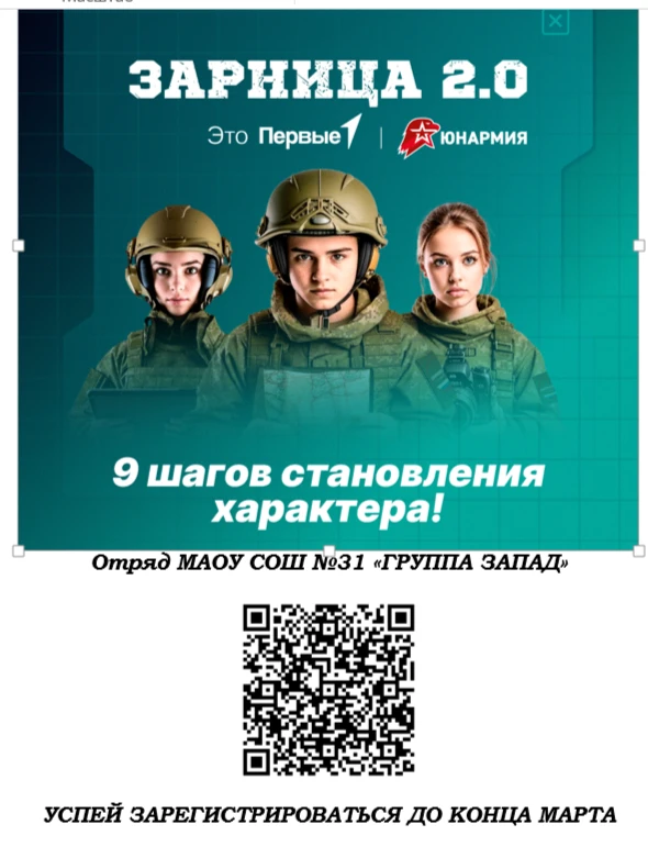 ✅ В нашей школе открыт набор на участие во Всероссийской военно-патриотической игре «Зарница 2.0».